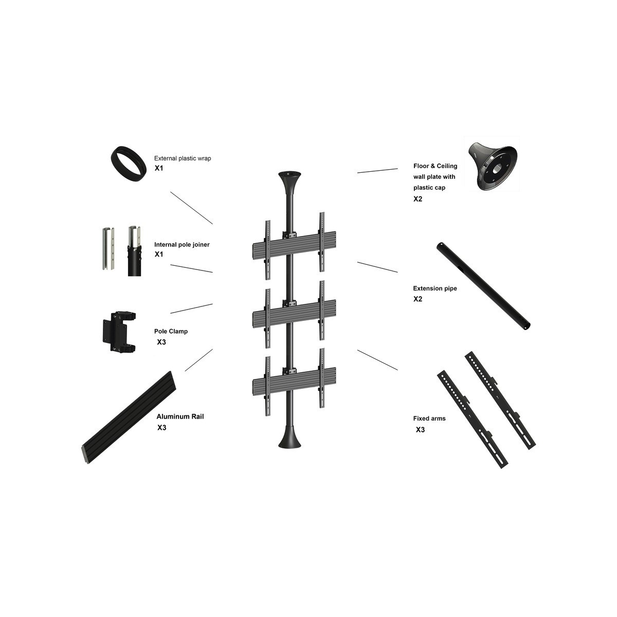 Multibrackets 3644. Adatto per: Display pubblico, Peso massimo (capacità): 90 kg, Capienza minima dimensioni dello schermo: 101,6 cm (40"), Capienza massima dimensioni dello schermo: 165,1 cm (65"), Compatibilità interfaccia di montaggio (min): 100 x 100 mm, Compatibilità interfaccia di montaggio (max): 800 x 600 mm. Range di regolazione altezza: 580 - 1550 mm. Colore del prodotto: Nero. Gestione del filo