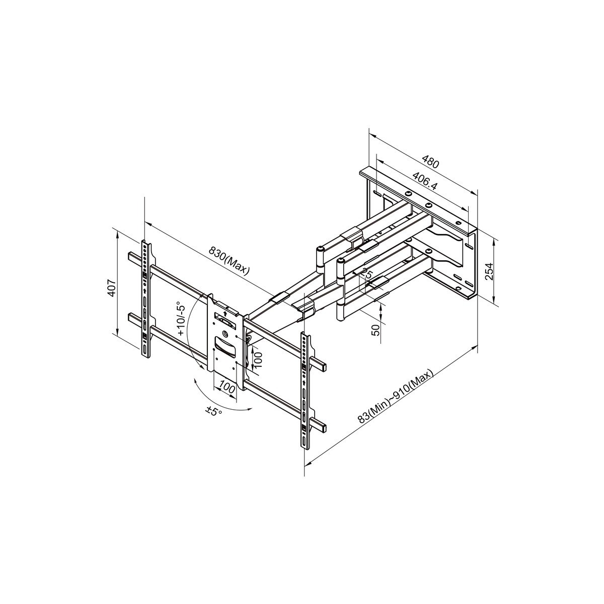 La staffa da parete multisnodo da 910mm di linghezza con portata fino a 60 kg, è ideale per installazioni domestiche e commerciali fino a 90âÂÂ
