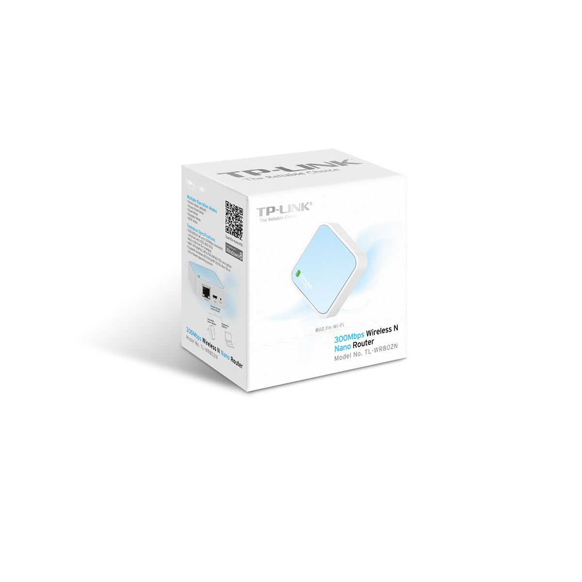 TP-LINK TL-WR802N. Banda Wi-Fi: Banda singola (2.4 GHz), Wi-Fi standard: Wi-Fi 4 (802.11n), Intervallo di trasferimento dei dati WLAN (max): 300 Mbit/s. Tipo di interfaccia LAN Ethernet: Fast Ethernet, Standard di rete: IEEE 802.11b,IEEE 802.11g,IEEE 802.11n, Velocità trasferimento Ethernet LAN: 10,100 Mbit/s. Algoritmi di sicurezza supportati: 128-bit WEP,152-bit WEP,64-bit WEP,WPA,WPA-PSK,WPA2,WPA2-PSK. Colore del prodotto: Blu, Bianco. Tipo di antenna: Interno