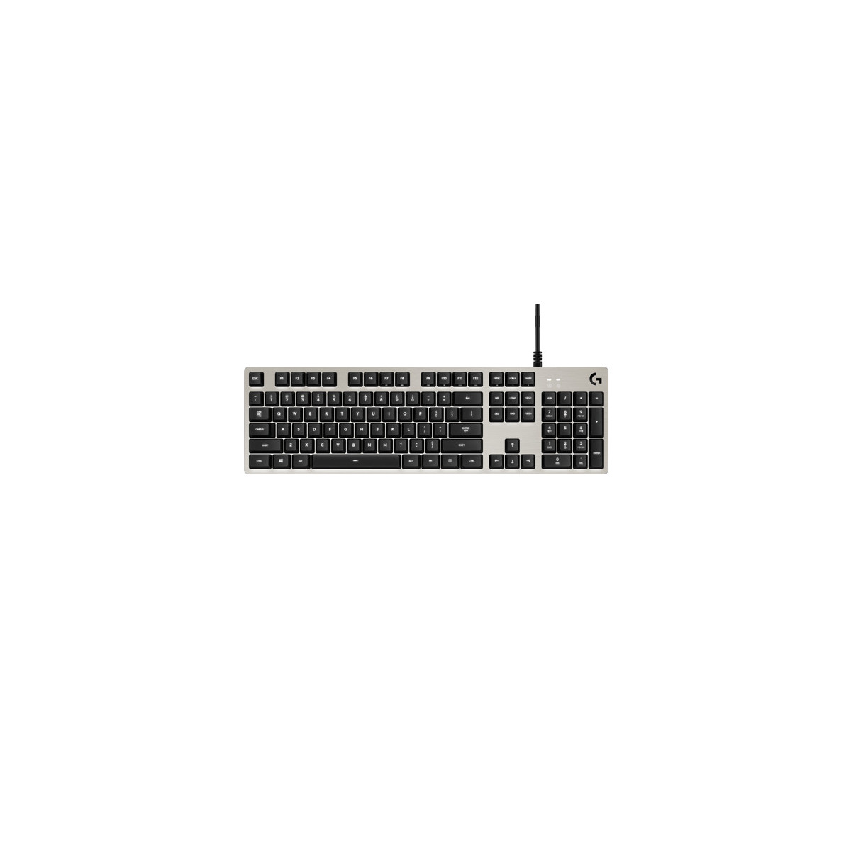 Logitech G G413. Fattore di forma tastiera: Standard. Stile tastiera: Dritto. Tecnologia di connessione: Cablato, Interfaccia dispositivo: USB, Interruttore a chiave per tastiera: Interruttore a chiave meccanica, Struttura tastiera: QWERTY. Tipologia di retroilluminazione: LED. Lunghezza cavo: 1,8 m. Utilizzo raccomandato: Giocare. Colore del prodotto: Argento