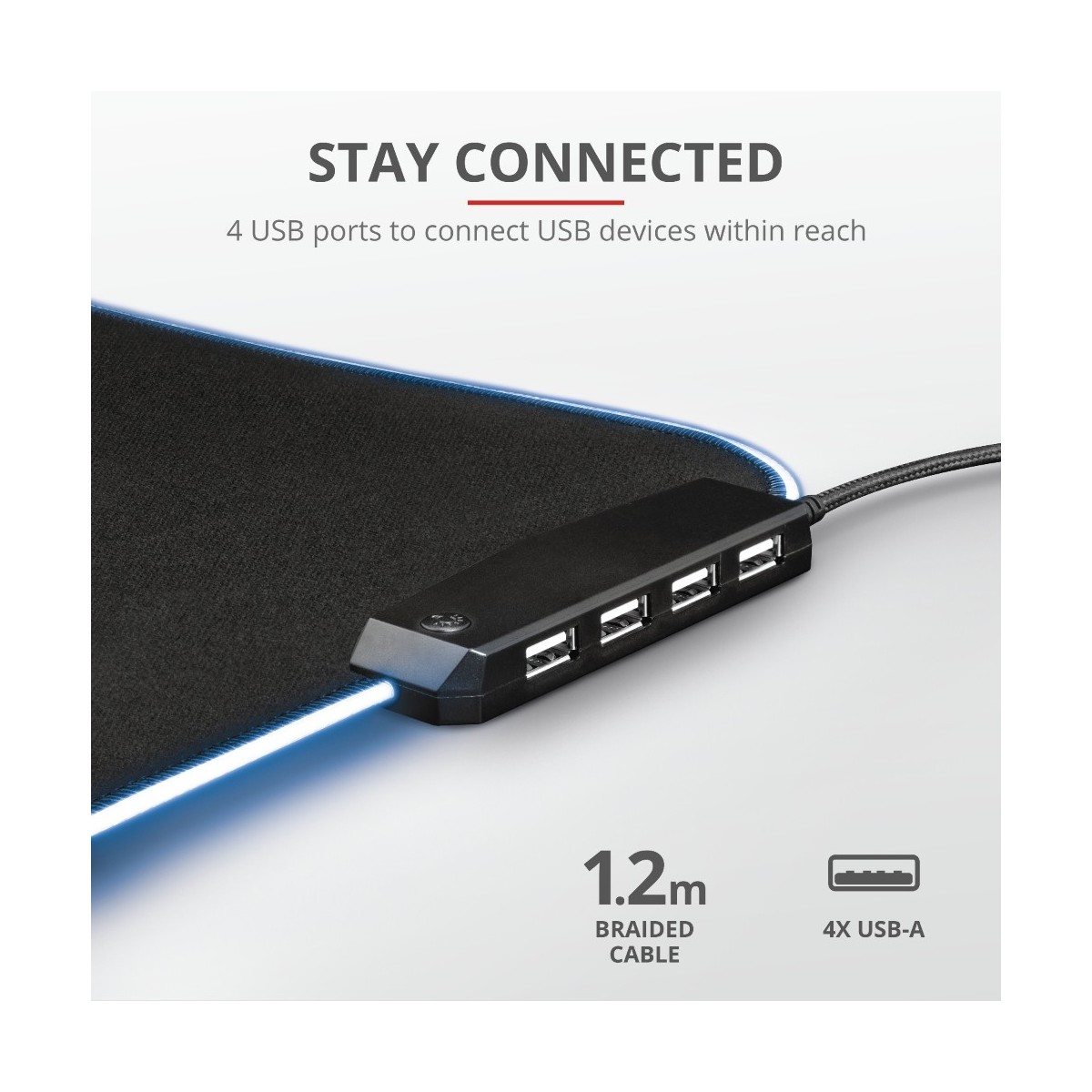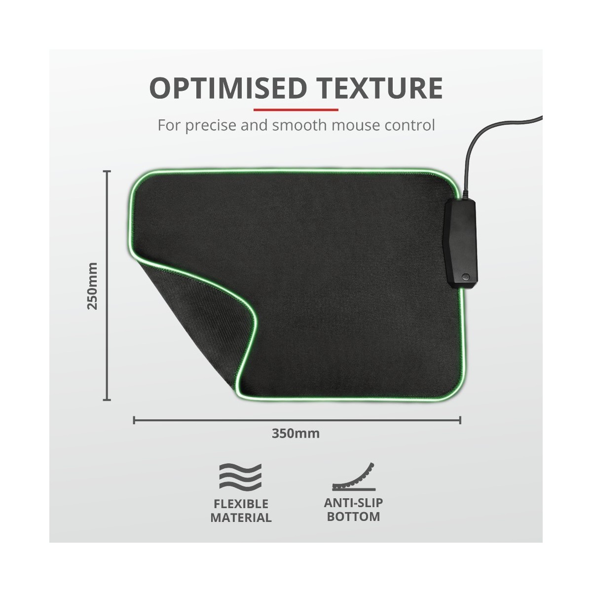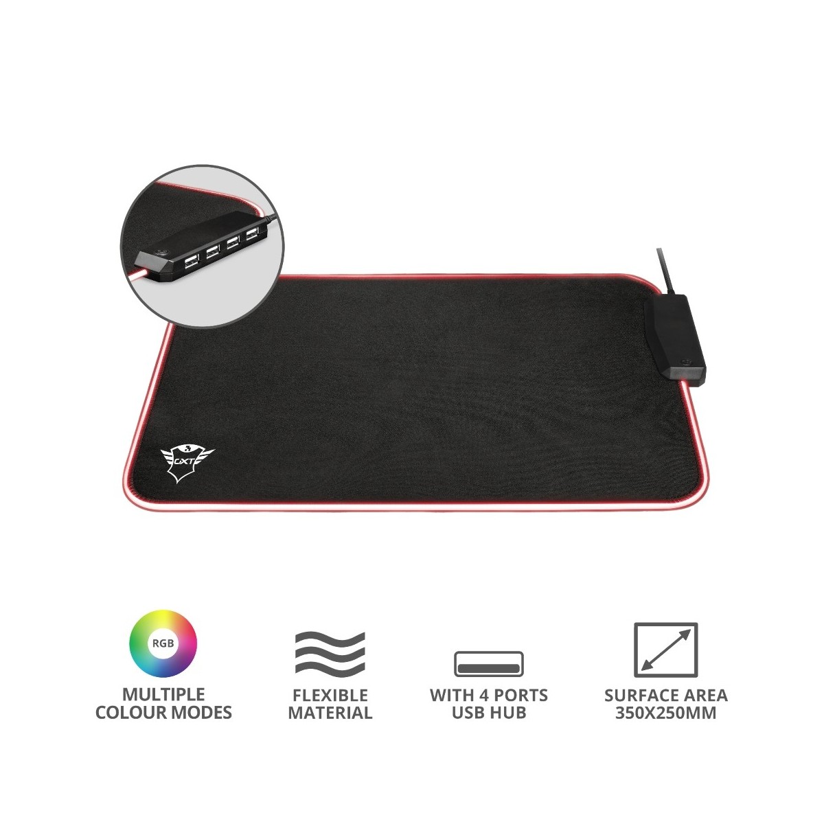 Il mouse pad flessibile Trust GXT 765 Glide RGB offre il non plus ultra di funzionalità e stile, senza rinunciare a nulla. La superficie offre al mouse tutta la libertà necessaria, 4 porte USB e un gioco di luci spettacolare: non c'è garanzia migliore per un'esperienza di gaming indimenticabile.