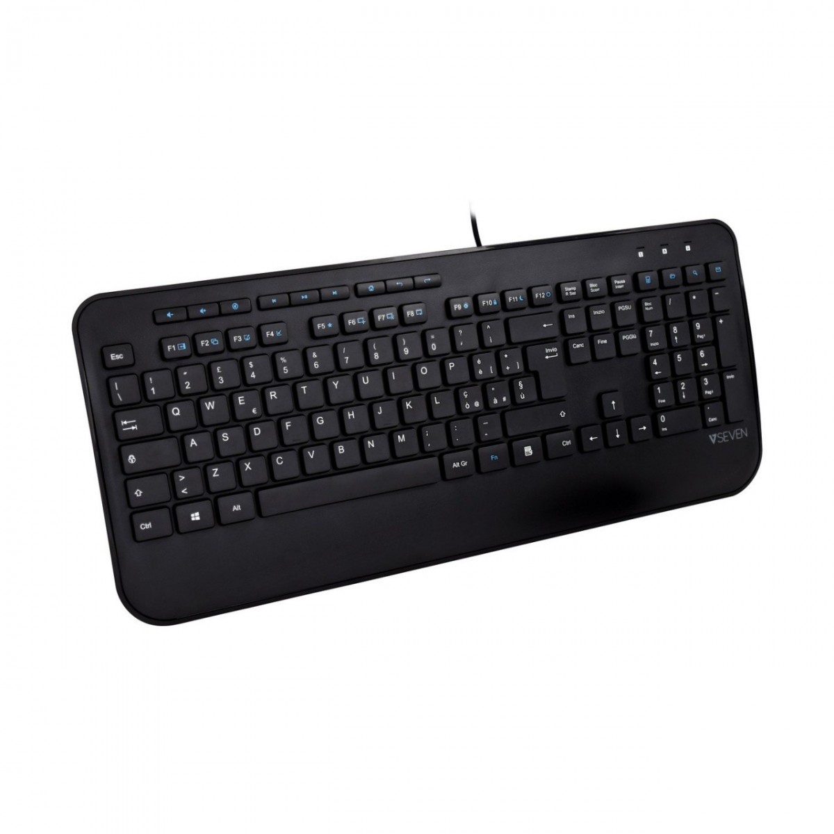 V7 Tastiera multimediale professionale USB – IT. Fattore di forma tastiera: Standard. Stile tastiera: Dritto. Interfaccia dispositivo: USB, Interruttore a chiave per tastiera: Interruttore a chiave a membrana, Struttura tastiera: QWERTY. Riposo del polso. Lunghezza cavo: 1,8 m. Utilizzo raccomandato: Casa. Colore del prodotto: Nero