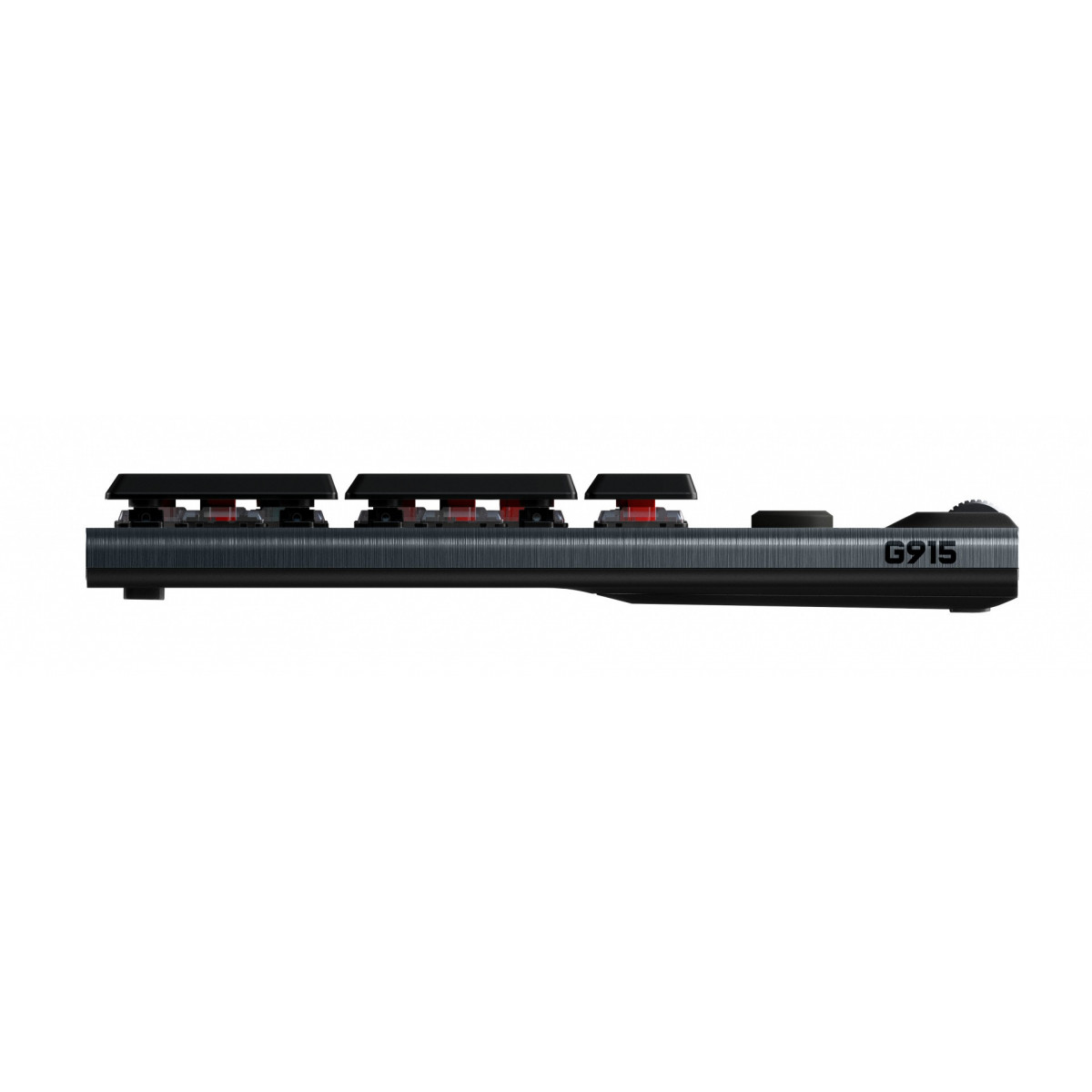 Logitech G G915. Fattore di forma tastiera: Standard. Stile tastiera: Dritto. Interfaccia dispositivo: RF senza fili + Bluetooth, Interruttore a chiave per tastiera: Interruttore a chiave meccanica, Struttura tastiera: QWERTY, Utilizzo raccomandato: Giocare. Colore del prodotto: Nero