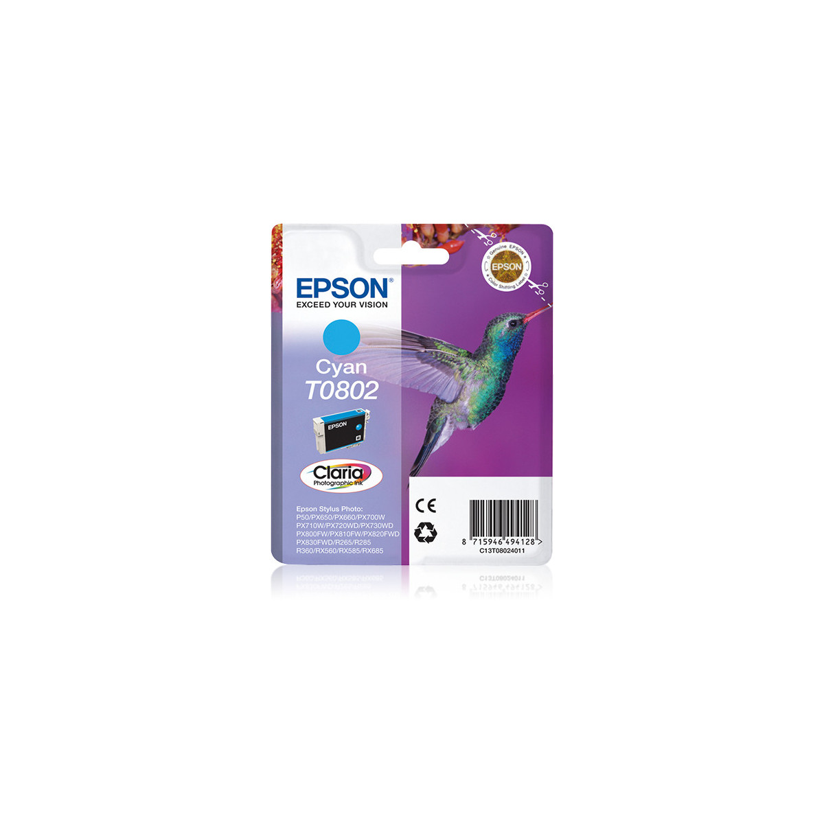 Epson Hummingbird Cartuccia Ciano. Tipo: Originale, Colori di stampa: Ciano, Compatibilità marca: Epson. Larghezza imballo: 145 mm, Profondità imballo: 26 mm, Altezza imballo: 120 mm. Ampiezza del pallet: 80 cm, Lunghezza del pallet: 120 cm, Altezza del pallet: 145 cm