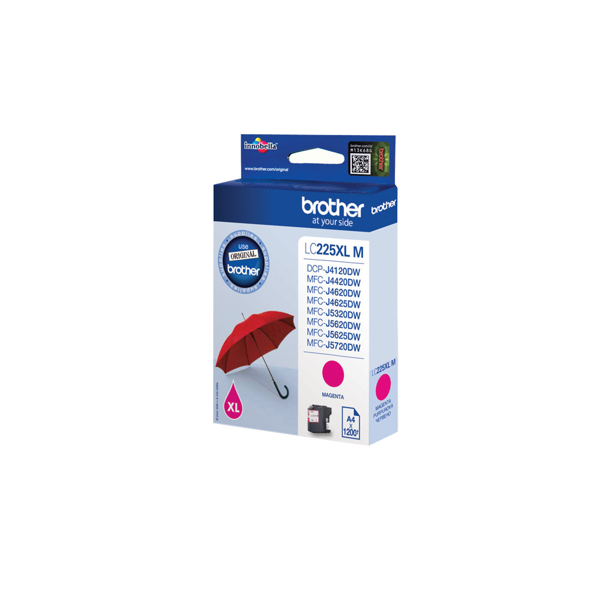 Brother LC-225XLM. Tipo: Originale, Tipo di inchiostro: Inchiostro a base di pigmento, Colori di stampa: Magenta. Tipo di imballo: Blister. Produzione pagine note a piè di pagina: ISO / IEC 24711, Dimensioni carta: A4
