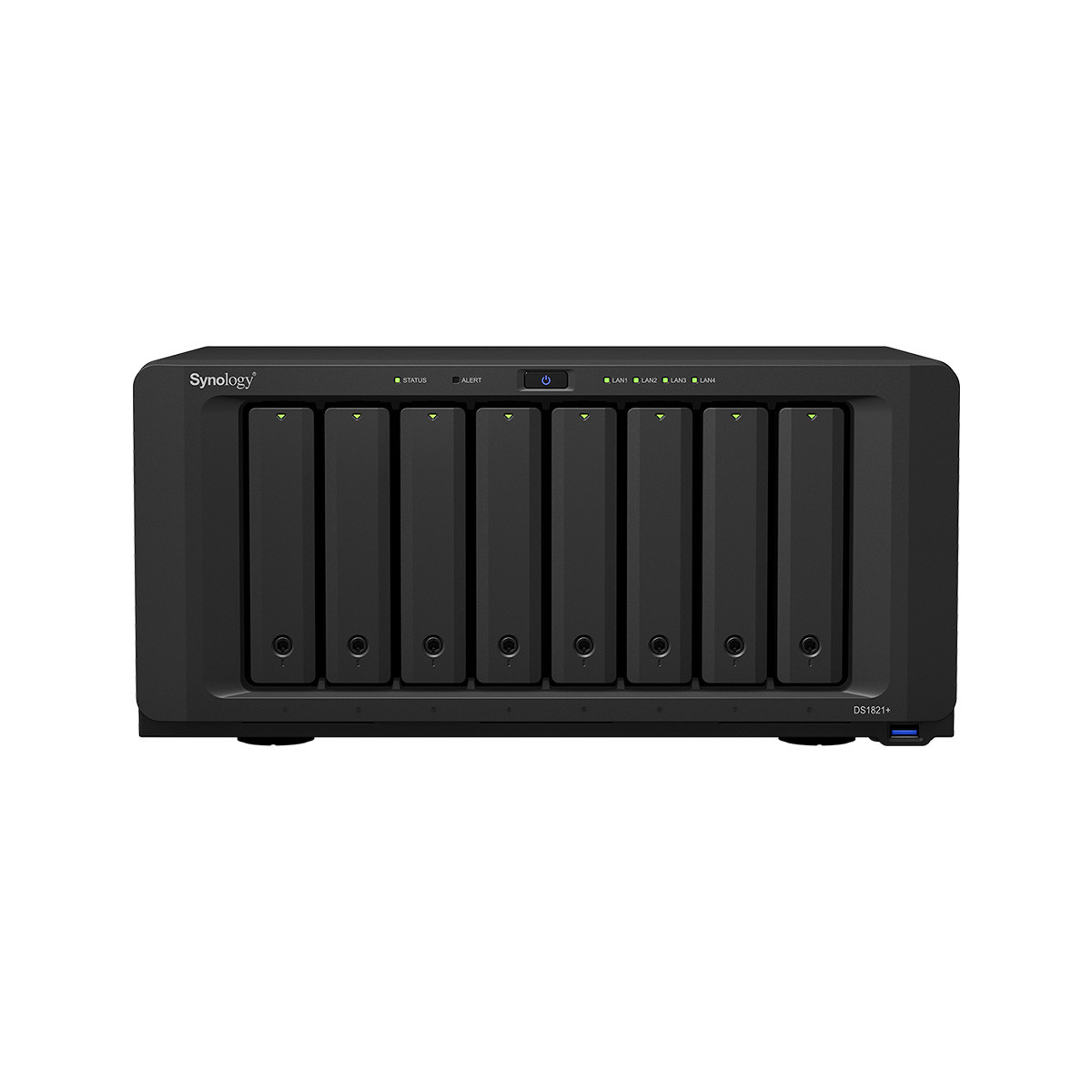 Synology DiskStation DS1821+. Tipi di unità di archiviazione supportate: HDD & SSD, Interfacce dell'unità di archiviazione supportate: SATA, Seriale ATA II, Serial ATA III, Dimensioni dei dispositivi di archivio supportati: 2.5,3.5". Famiglia processore: AMD Ryzen, Produttore processore: AMD, Modello del processore: V1500B. RAM installata: 4 GB, Tipo di RAM: DDR4, Massima RAM supportata: 32 GB. Velocità trasferimento Ethernet LAN: 1000 Mbit/s, Protocolli di rete supportati: SMB1 (CIFS), SMB2, SMB3, NFSv3, NFSv4, NFSv4.1, NFS iSCSI, HTTP, HTTPs, FTP, SNMP, LDAP, CalDAV. Tipo di case: Tower, Tipo di raffreddamento: Attivo, Colore del prodotto: Nero