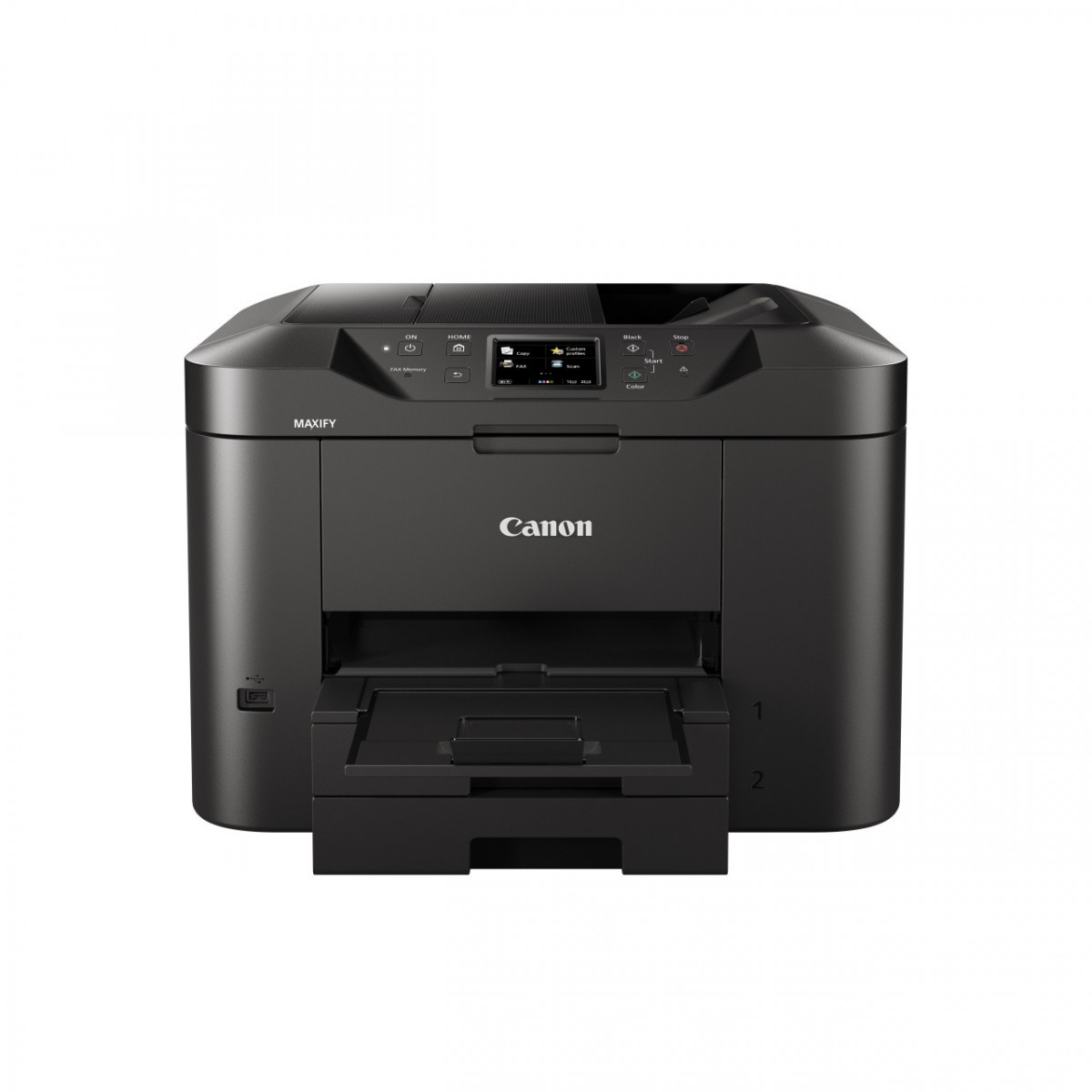 Multifunzione inkjet a colori per gli uffici domestici. Canon MAXIFY MB2750 offre stampa mobile e integrazione cloud, è dotato di doppio cassetto carta con capacità totale di 500 fogli e assicura una rapidità di stampa pari a 24 ipm in bianco nero e 15,5 ipm a colori al fine di massimizzare la produttività.