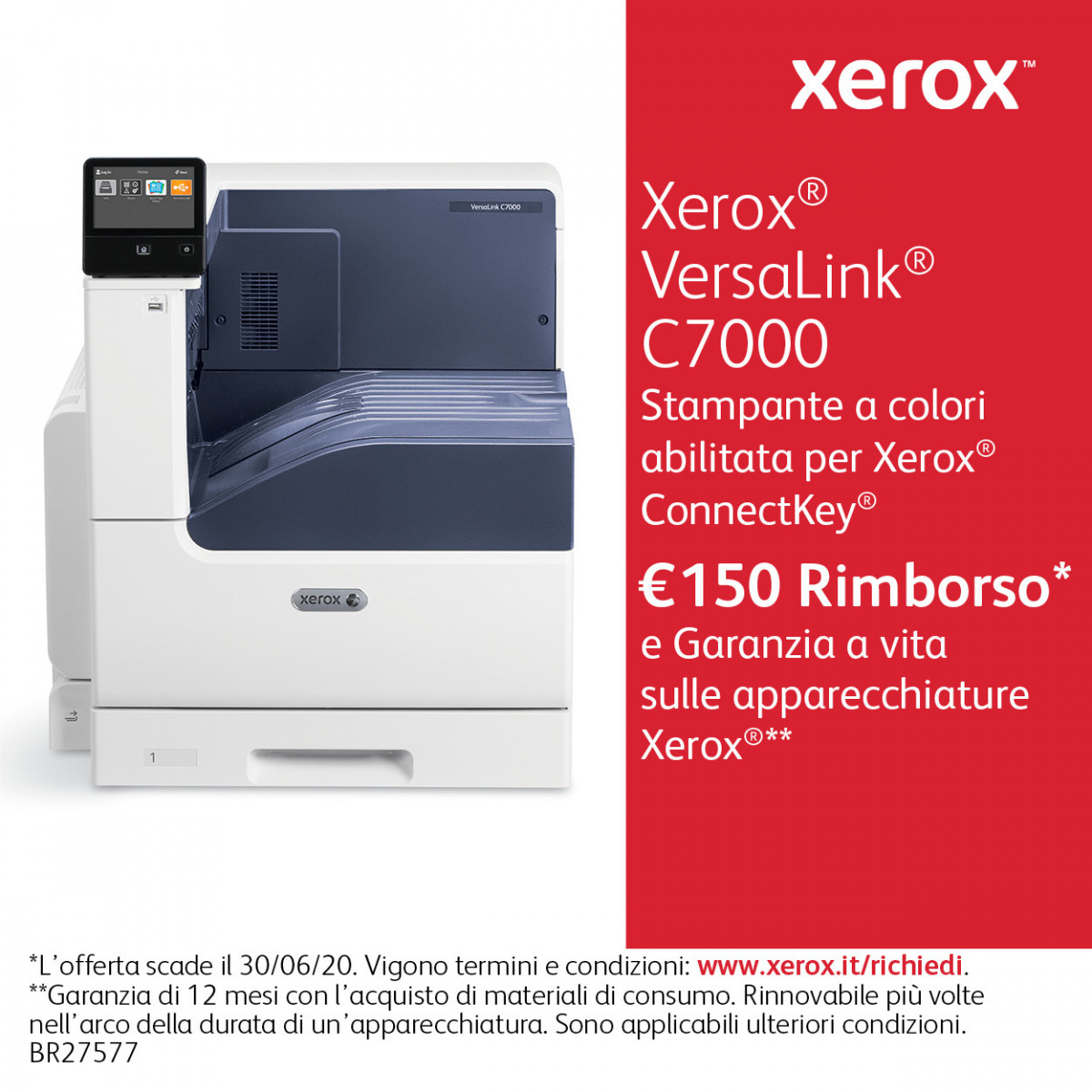 Progettata per garantire un'affidabilità di livello superiore, la stampante a colori VersaLink C7000 presenta una nuova configurazione hardware con meno parti mobili, un percorso carta diritto e un sistema di imaging avanzato. I dispositivi VersaLink sono ricchi di funzionalità e modernissime tecnologie Xerox® progettate per velocizzare la diffusione delle informazioni e ridurre i flussi di lavoro inefficienti.