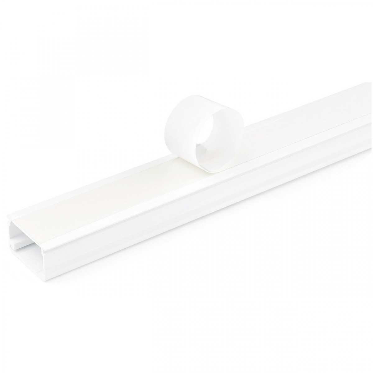 Dotata di cuscinetto adesivo, la canalina portacavi può essere installata semplicemente rimuovendo la protezione posteriore e incollandola nella posizione desiderata su qualsiasi superficie, tra cui legno, cartongesso, vetro o muratura.
