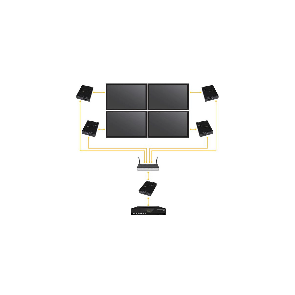 Il kit HDMI® over IP permette di estendere un segnale HDMI sulla rete. È possibile estendere ricevitori supplementari (venduti separatamente) per distribuire un segnale HDMI a più punti e combinare i display remoti per creare una parete video.