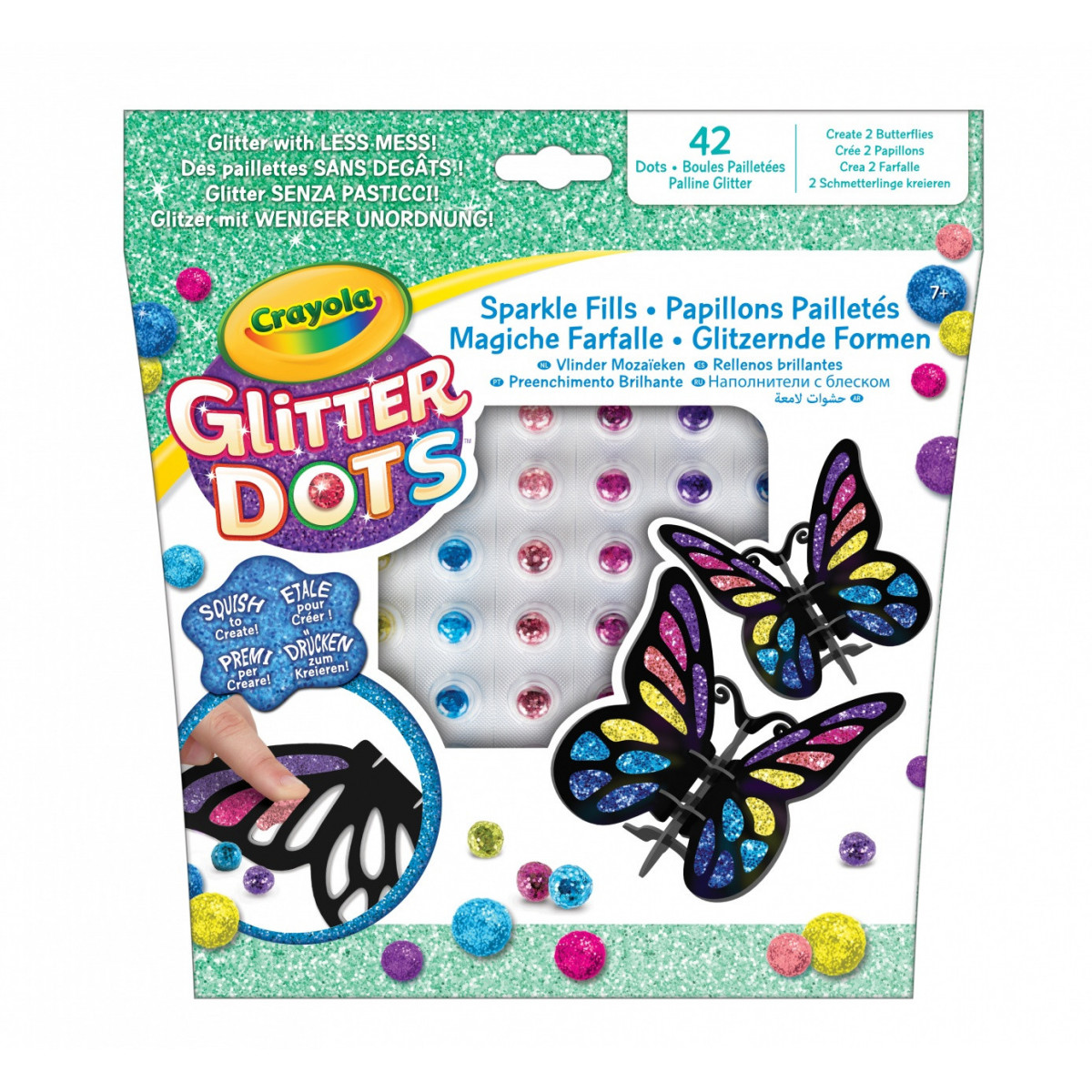 Crayola 04-1083. Tipo di prodotto: Kit da artigianato per bambini, Parti per attività manuali incluse: Colla con brillantini, Strumento per quilling, Modello, Genere consigliato: Ragazzo/Ragazza, Età consigliata (min): 5 anno/i, Colore del prodotto: Multicolore. Tipo di imballo: Scatola da appendere