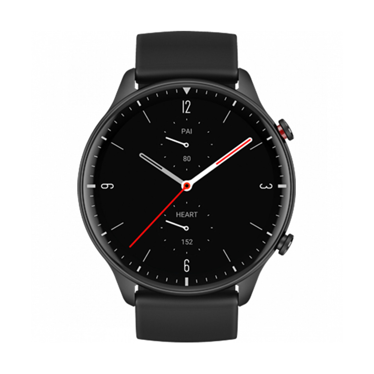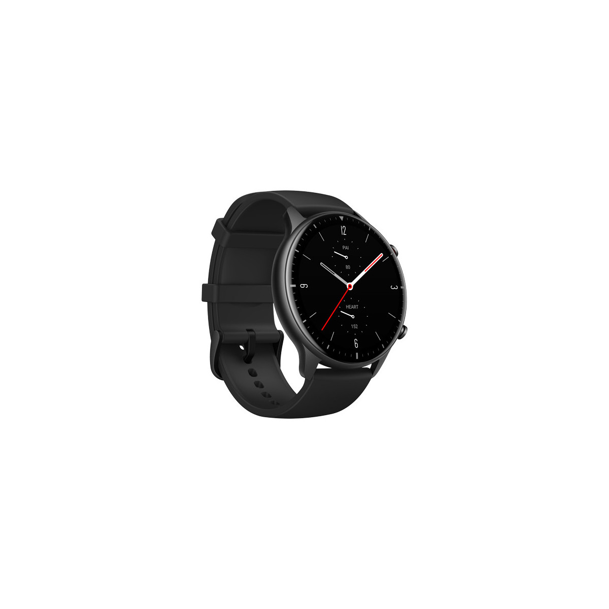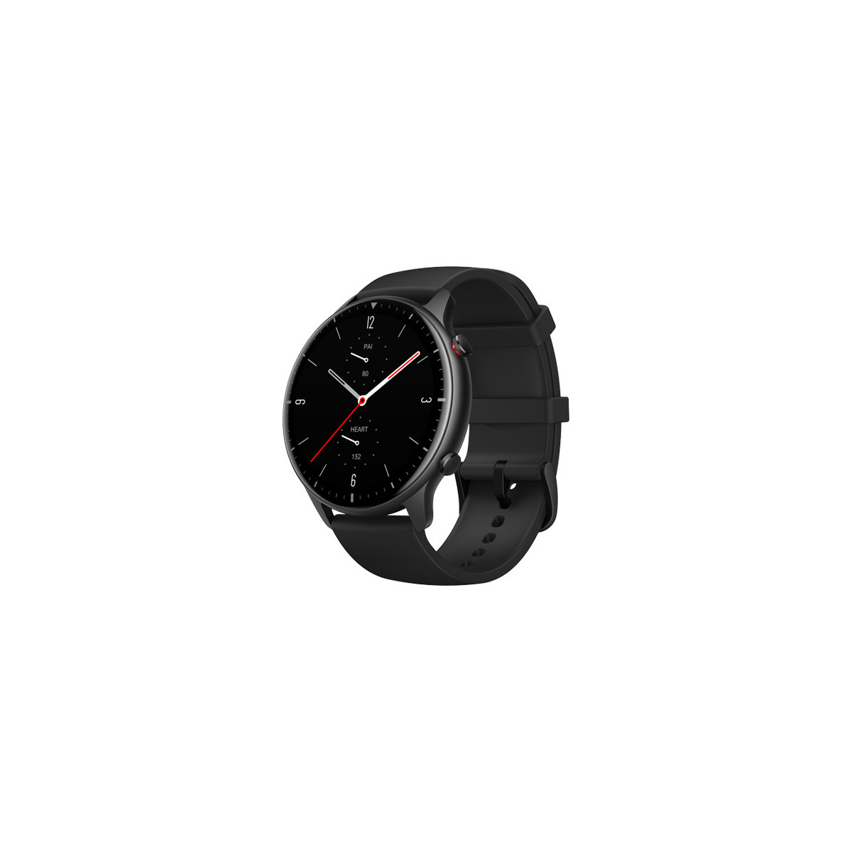 Amazfit GTR 2 Sport. Dimensioni schermo: 3,53 cm (1.39"), Tipo di display: AMOLED, Risoluzione del display: 454 x 454 Pixel, Touch screen. Wi-Fi. GPS (satellitare). Capacità della batteria: 471 mAh. Peso: 31,5 g. Colore cinturino: Nero