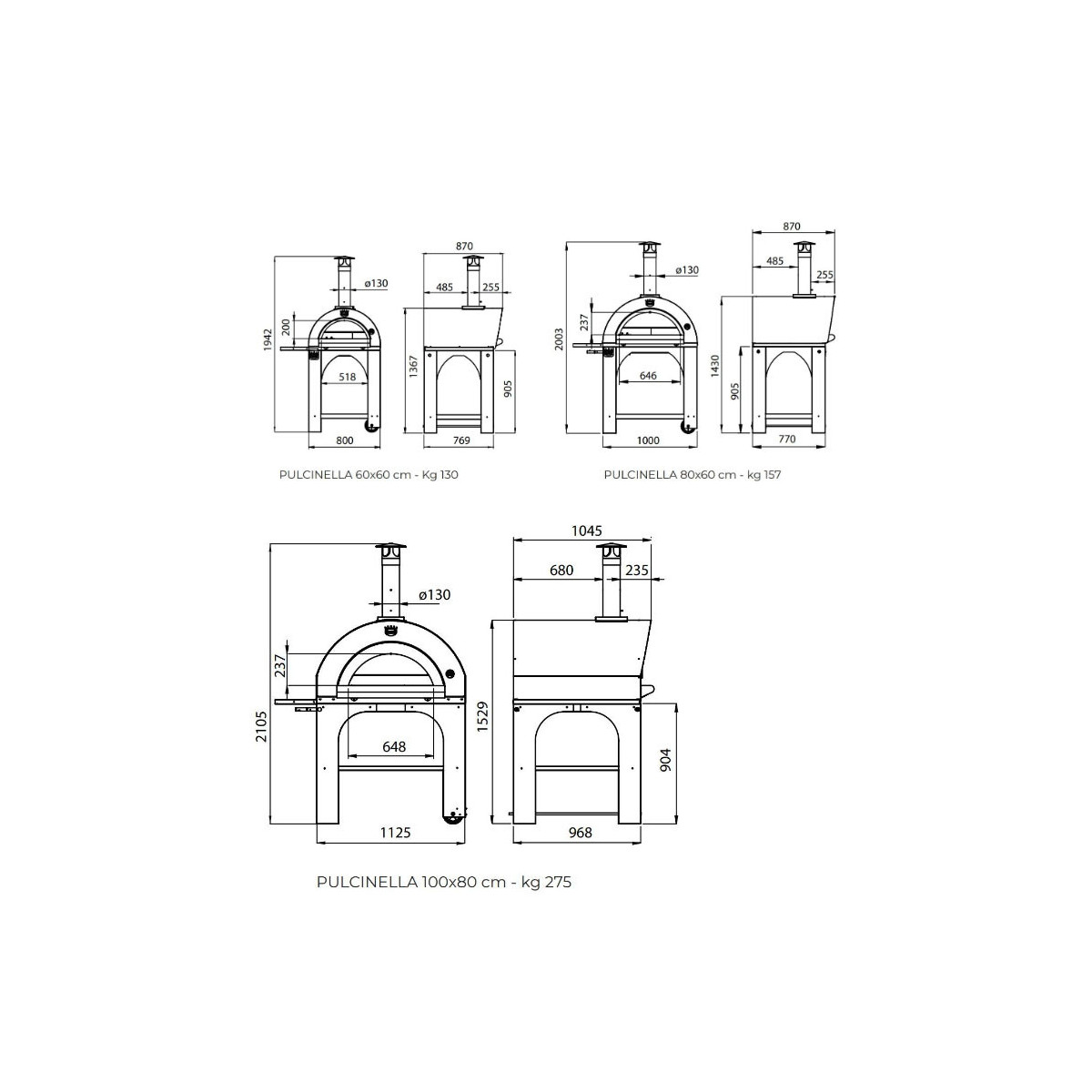 Caratteristiche Forno per pizza a legna Clementi Pulcinella 60x60 tetto Antracite