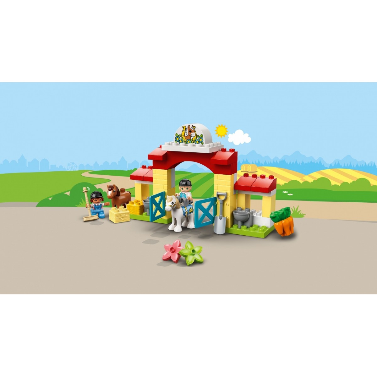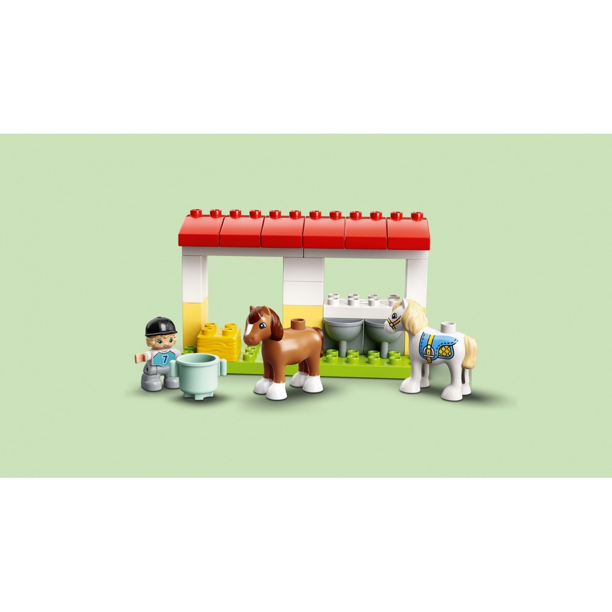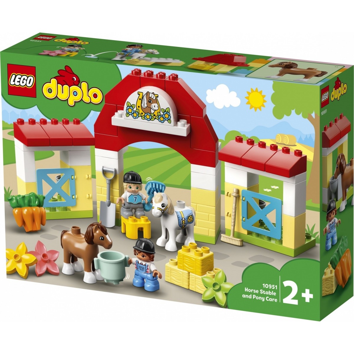 Il playset Stalla e pony LEGO® DUPLO® Town (10951) ha tutto ciò che serve a un piccolo amante degli animali per prendersi cura di 2 adorabili pony. Un set per giocare con la fantasia e imparare divertendosi senza fine.Gioca e impara con la stalla dei ponyIl divertimento è assicurato accudendo 2 graziosi pony che devono mangiare prima di uscire in passeggiata, bere ed essere spazzolati. Prendendosi cura dei pony, come preparare un giaciglio accogliente per farli dormire, i bambini sviluppano capacità motorie complesse e consapevolezza sociale ed emotiva.Giocattoli educativi pratici per i più piccoliI giocattoli LEGO DUPLO regalano ai bambini di età prescolare divertimento senza limiti, consentendo loro di esprimere la propria personalità e di imparare giocando. Con i playset DUPLO, genitori e bambini possono condividere preziose pietre miliari dello sviluppo mentre giocano e si divertono insieme.