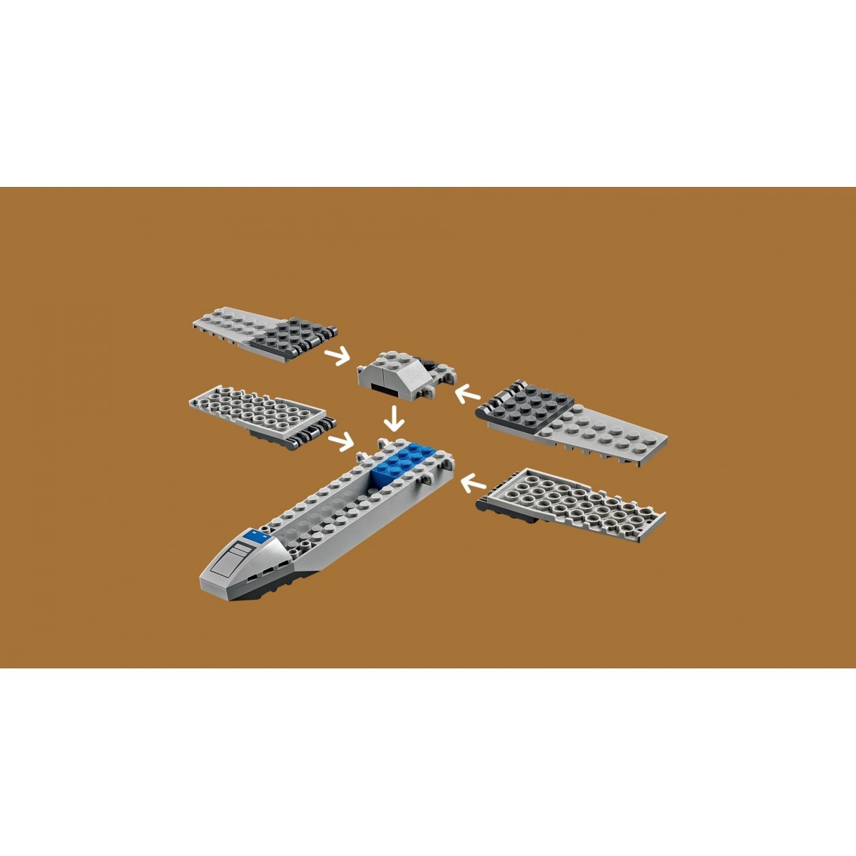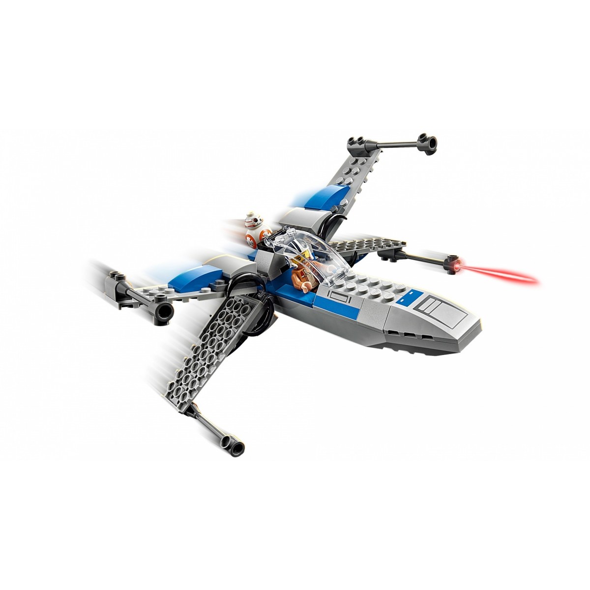 - L'X-wing possiede una cabina di pilotaggio apribile con postazione per la minifigure di Poe Dameron e uno spazio per BB-8, oltre ad ali pieghevoli per agevolare il volo.
