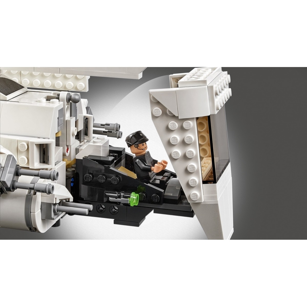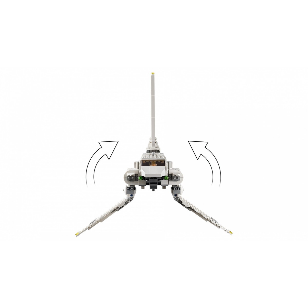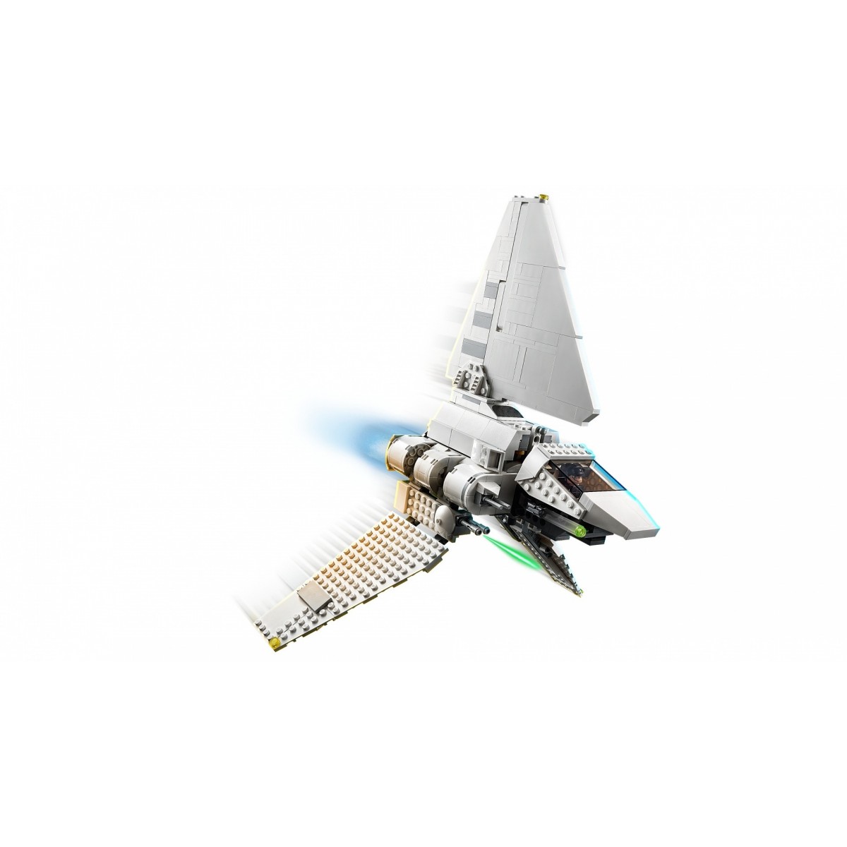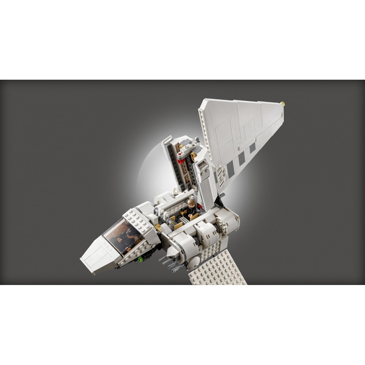 - La navetta imperiale dispone di una cabina di pilotaggio apribile per ospitare una minifigure, un vano principale apribile con spazio per 2 minifigure LEGO®, ali pieghevoli per modalità di volo e di atterraggio e 2 shooter.