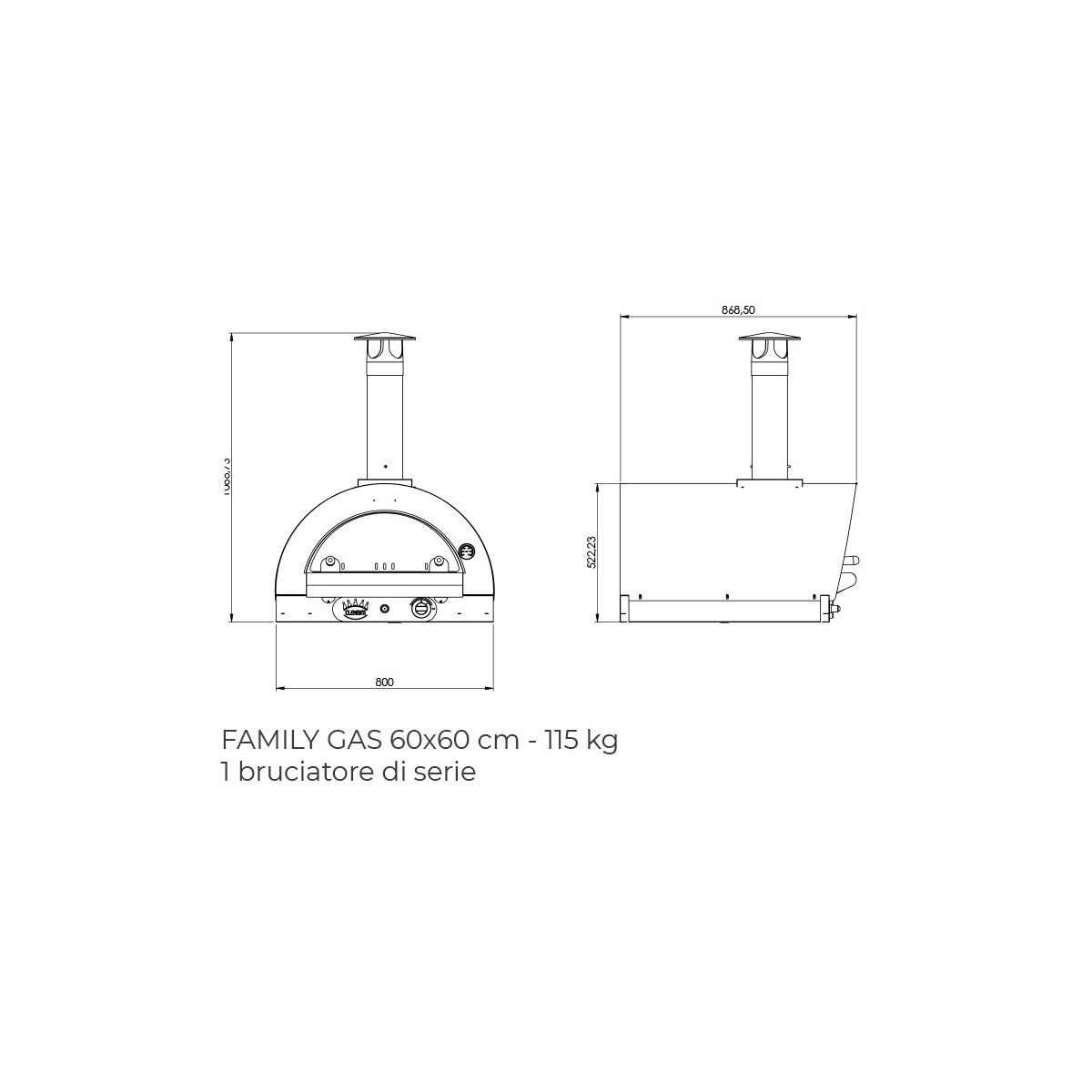 Dimensioni camera di cottura: 60x60 un bruciatore (2 pizze) sono disponibili altri formati