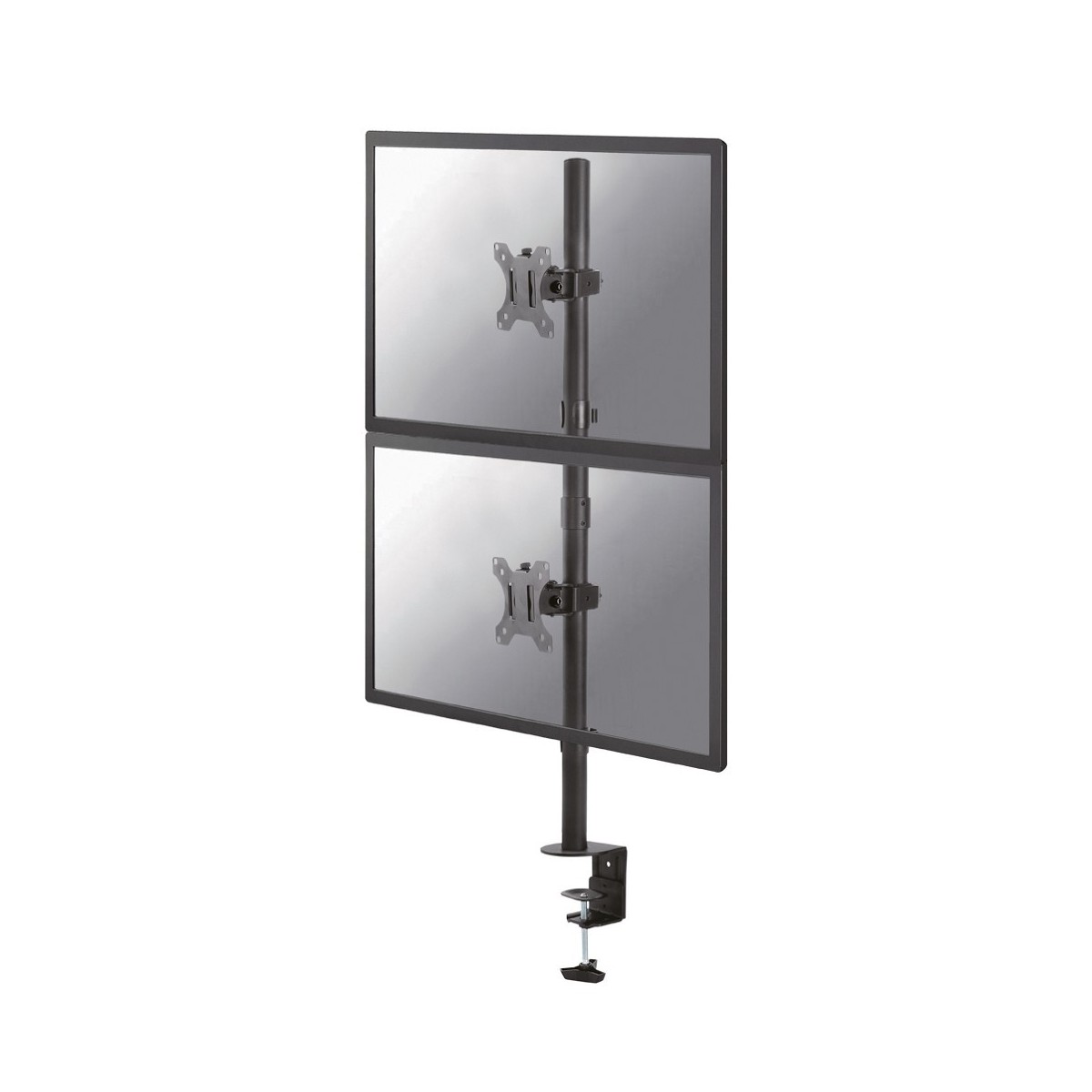 Questo braccio porta monitor NewStar, modello FPMA-D550DVBLACK consente di collegare due schermi LCD/LED/TFT su di una scrivania con la modalità di fissaggio su piano attraverso vite centrale o morsetto.