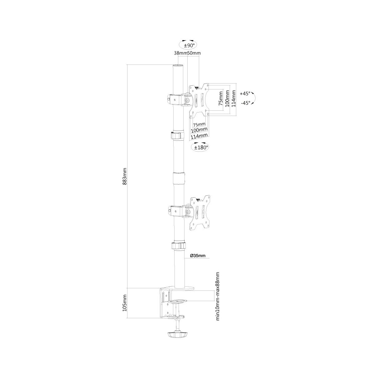Il supporto FPMA-D550DVBLACK ha un punto di articolazione ed è adatto a schermi fino a 32" con una capacità massima di trasporto di 16 kg (8 Kg per ogni schermo). Questo prodotto è adatto per schermi con fori VESA modello 75x75 o 100x100 mm. Per una diversa (più grande) foratura, si può combinare con una delle nostre piastre di adattamento VESA.