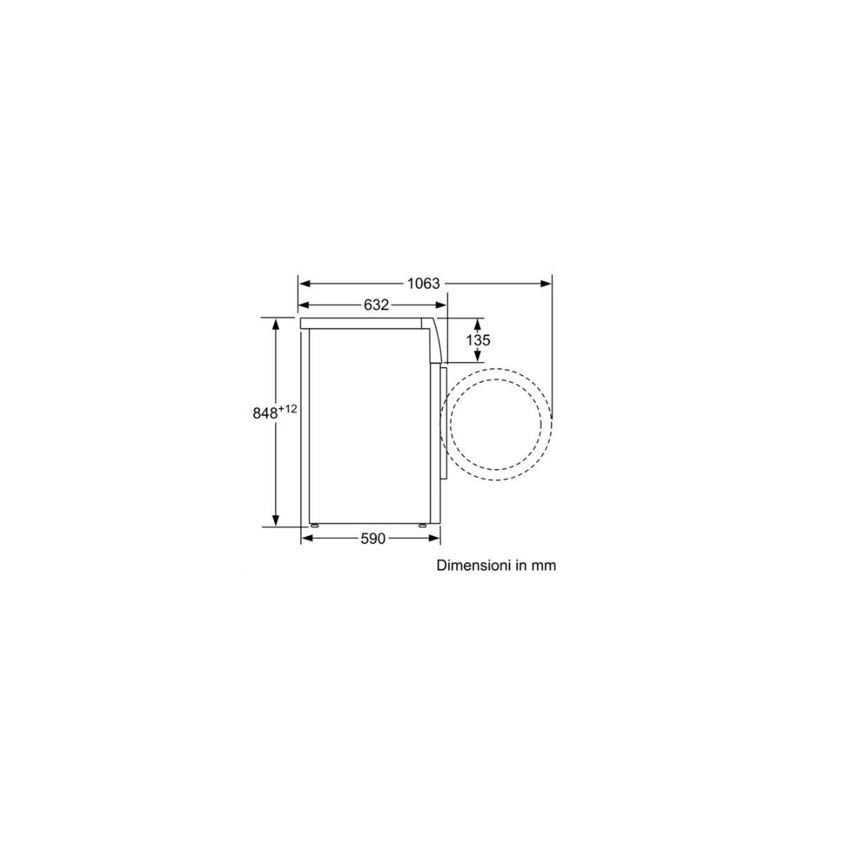 | Profondità con porta aperta a 90 gradi (mm) 1.063 Dimensioni del prodotto (mm) 848 x 598 x 590 Volume cestello (l) 63 Altezza regolabile (piedini) 1,20 Peso netto (kg) | 68,201 |