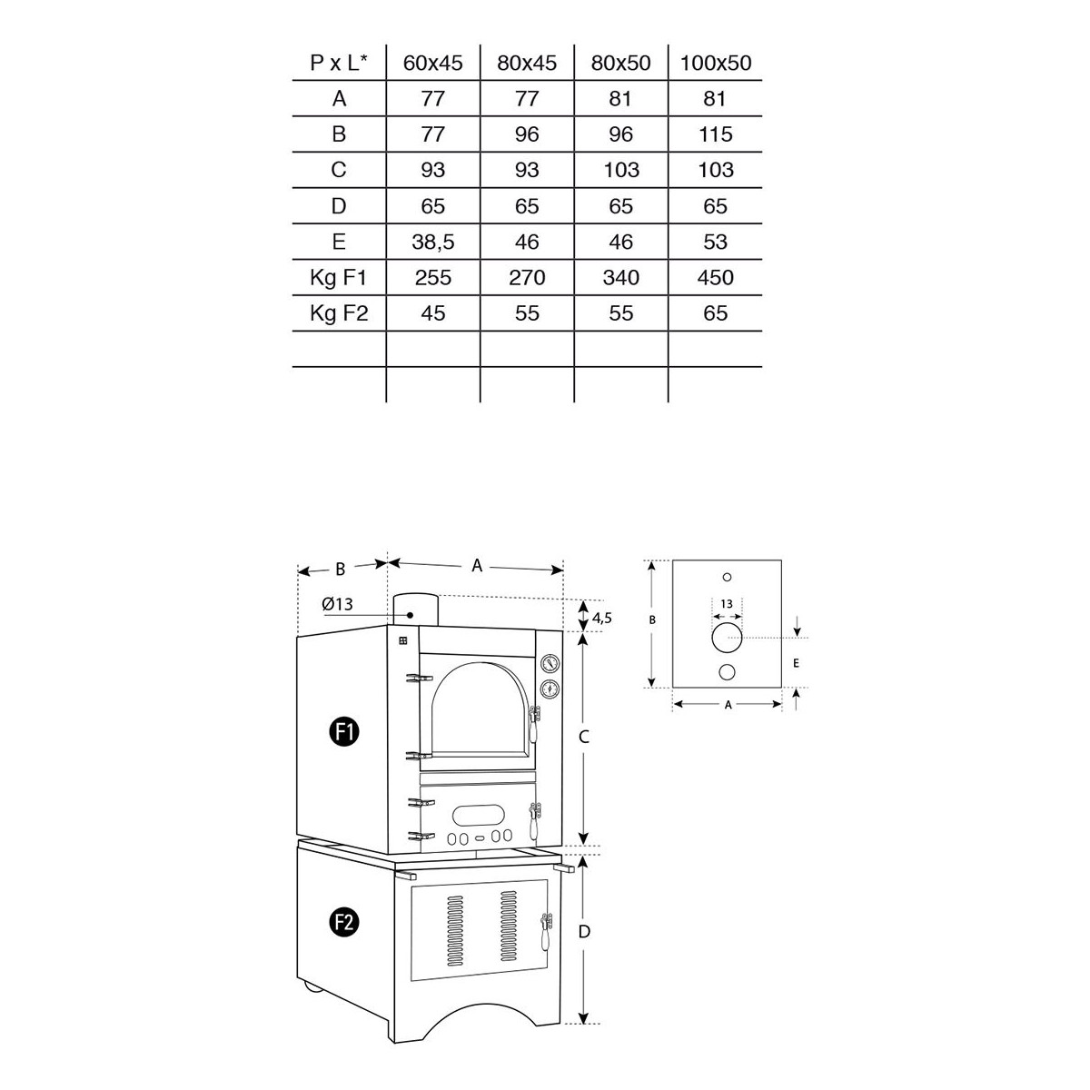 Dimensioni camera di cottura disponibili: 45x60 – 45x80 – 50x80 – 50x100 cm