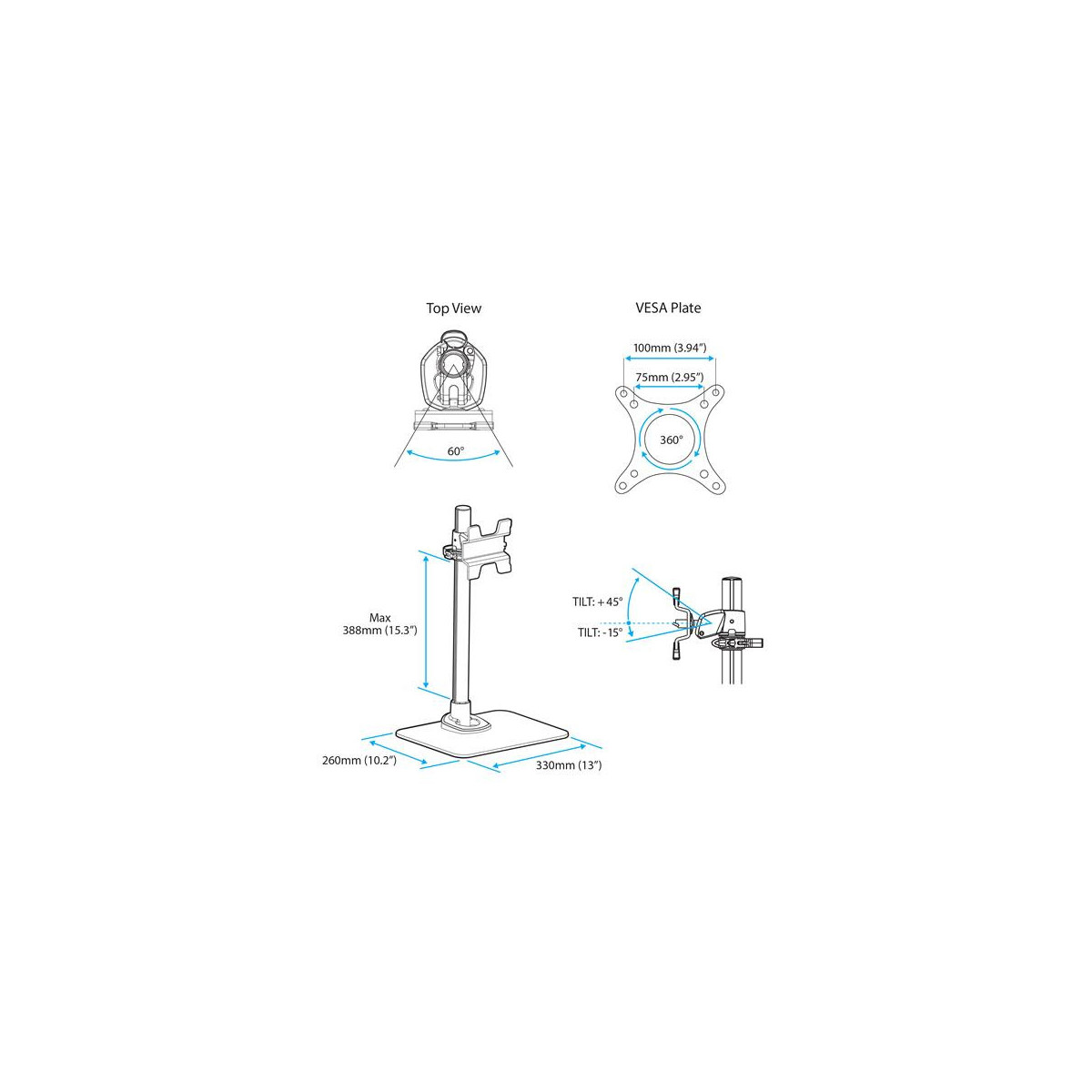 - Consente di massimizzare l'efficienza dello spazio montando i display sulla superficie della scrivania