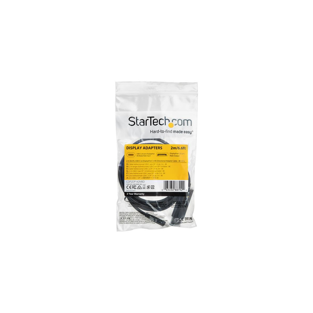 StarTech.com Cavo da USB C a DisplayPort 1.4 da 2m - Cavo 8K 60Hz/4K - Cavo adattatore video bidirezionale da DP a USB-C o da USB-C a DP -HBR3/HDR/DSC - Cavo monitor USB tipo C/TB3. Lunghezza cavo: 2 m, Connettore 1: USB tipo-C, Connettore 2: DisplayPort. Quantità per pacco: 1 pezzo(i), Larghezza imballo: 125 mm, Profondità imballo: 225 mm. Peso: 79 g. Larghezza scatola principale: 23 cm, Lunghezza del cartone principale: 50 cm, Altezza scatola principale: 21 cm