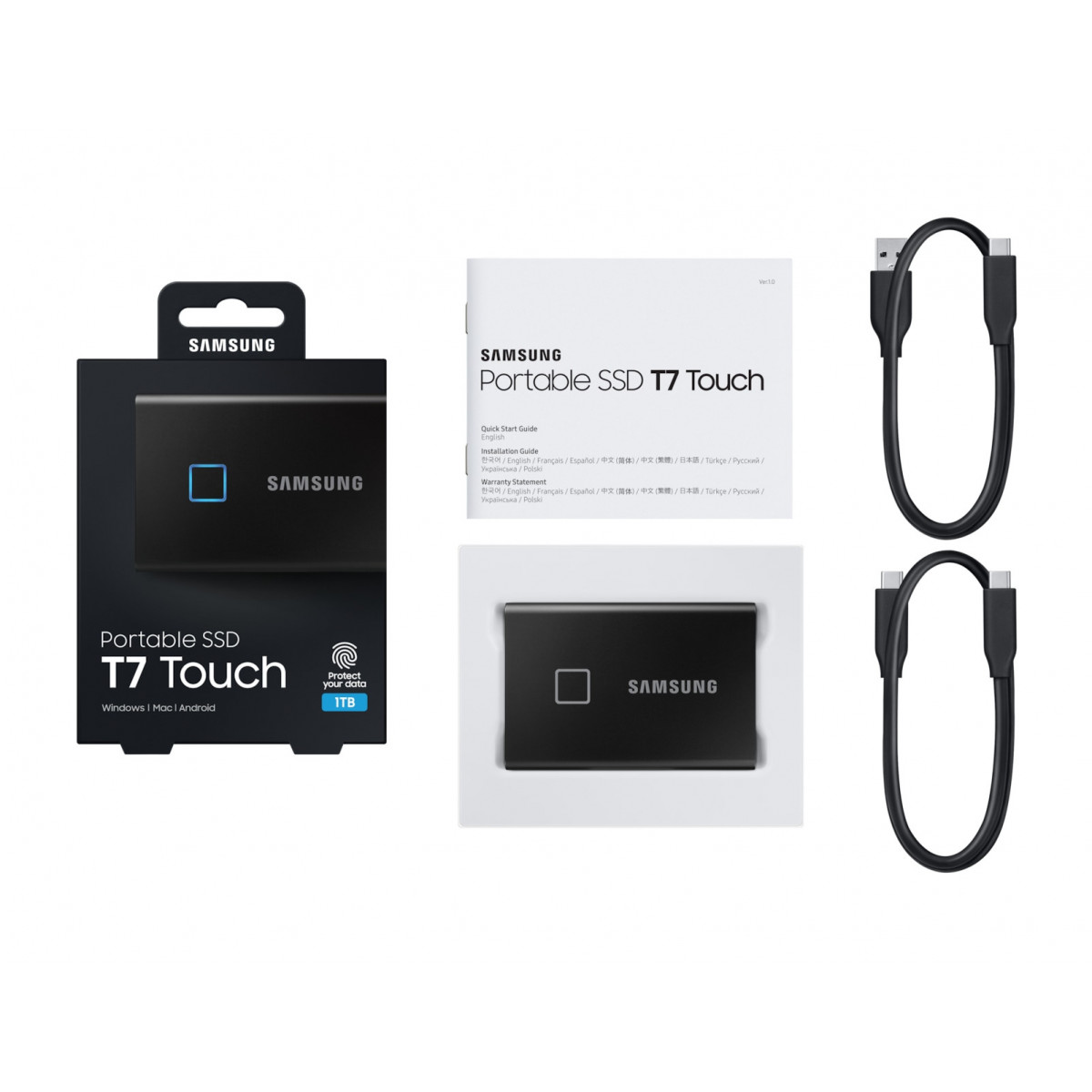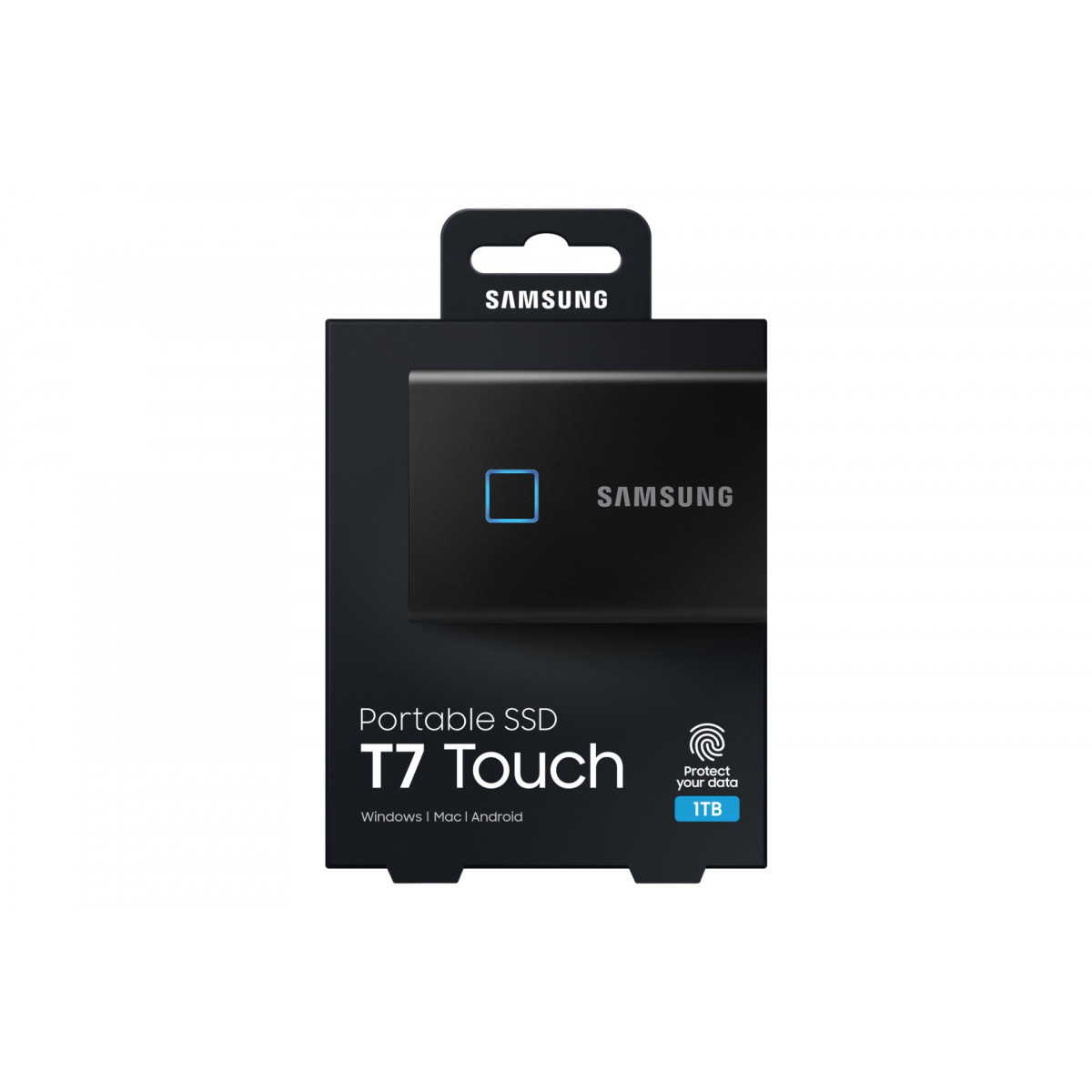 Samsung Portable SSD T7 Touch USB 3.2 1TB Black. Capacità SSD: 1000 GB. Connettore USB: USB tipo-C, Versione USB: 3.2 Gen 2 (3.1 Gen 2). Velocità di lettura: 1050 MB/s, Velocità di scrittura: 1000 MB/s. Protezione della password, Colore del prodotto: Nero
