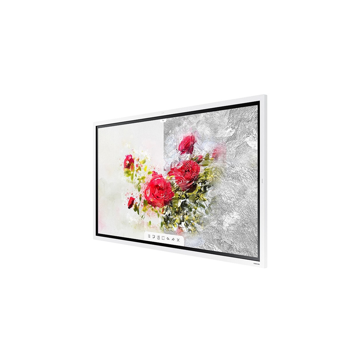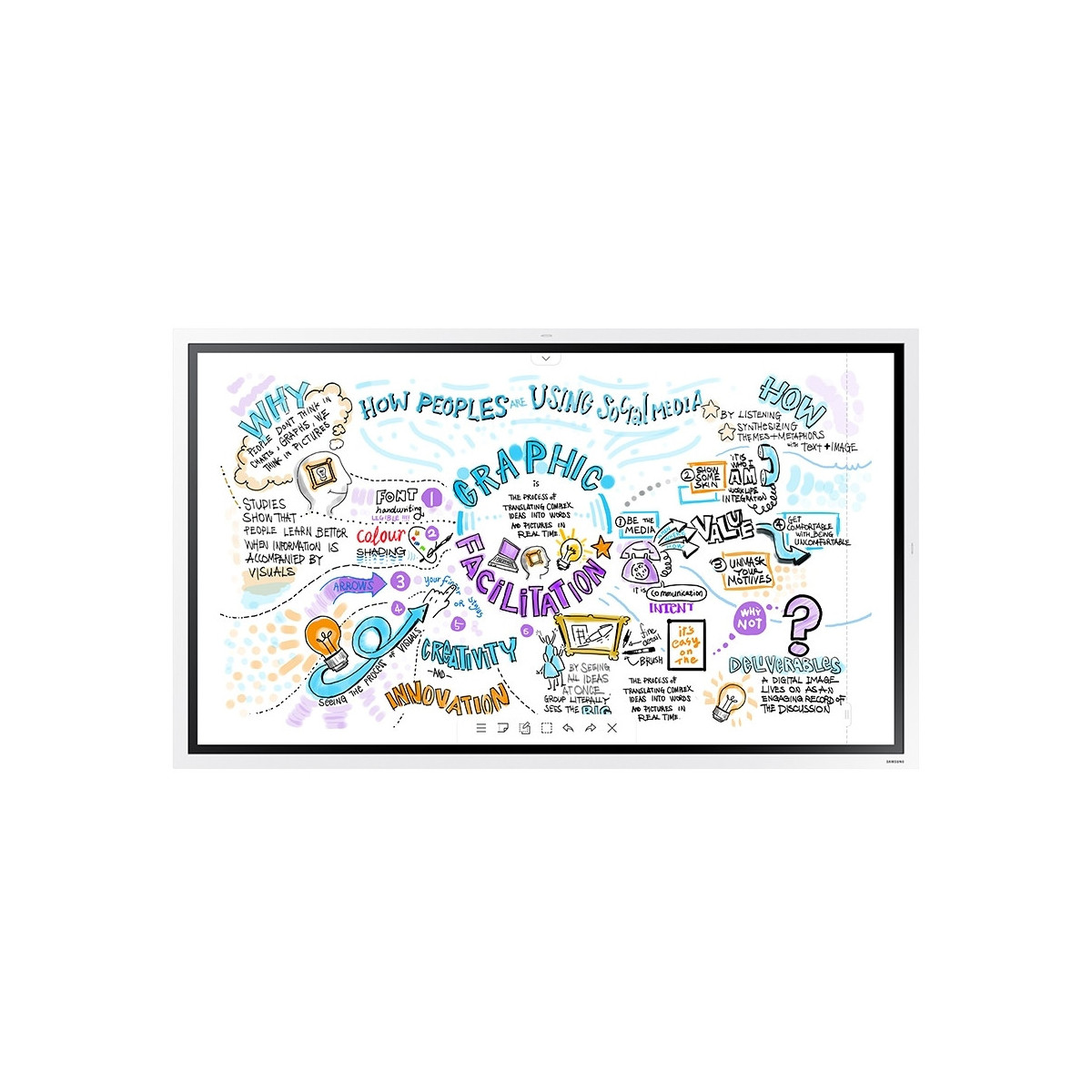 Samsung Display Interattivo FLIP 2 Serie WMR da 55”. Dimensioni schermo: 139,7 cm (55"), Tipo di display: LED, Risoluzione del display: 3840 x 2160 Pixel. Design: Pannello piatto per segnaletica digitale, Colore del prodotto: Bianco, Posizionamento supportato: Interno. Utilizzo: Universale, Ore di servizio (ore/giorni): 16/7. Consumi: 154 W, Consumi (modalità stand-by): 0,5 W, Tensione di ingresso AC: 100 - 240 V. Larghezza: 1297,4 mm, Profondità: 59,9 mm, Altezza: 768,2 mm