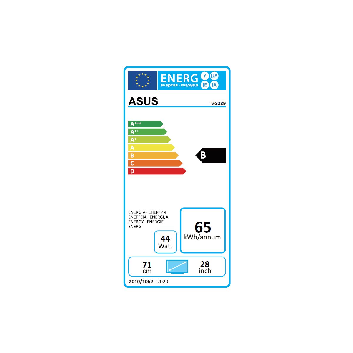 ASUS TUF Gaming VG289Q1A. Dimensioni schermo: 71,1 cm (28"), Risoluzione del display: 3840 x 2160 Pixel, Tipologia HD: 4K Ultra HD, Tecnologia display: LED, Tempo di risposta: 5 ms, Rapporto d'aspetto nativo: 16:9, Angolo di visualizzazione (orizzontale): 178°, Angolo di visualizzazione (verticale): 178°. Altoparlanti incorporati. Montaggio standard VESA, Regolazione altezza. Colore del prodotto: Nero