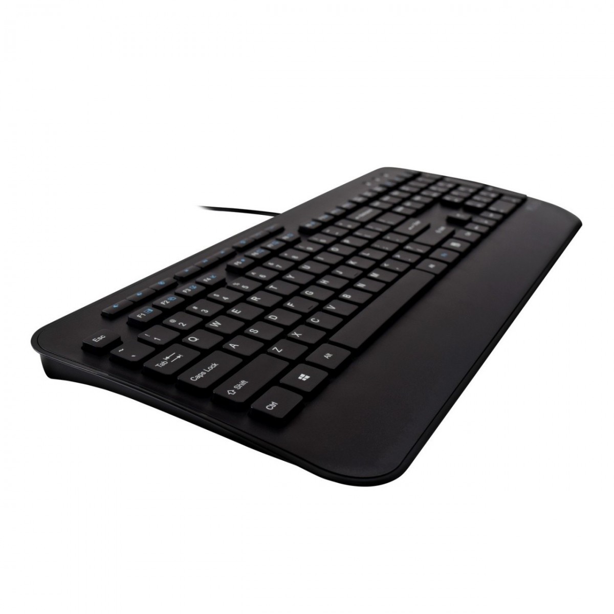 V7 Combinazione di tastiera USB di dimensioni standard con poggiapolsi e mouse ambidestro - ES. Fattore di forma tastiera: Standard. Stile tastiera: Dritto. Interfaccia dispositivo: USB, Interruttore a chiave per tastiera: Interruttore a chiave a membrana, Struttura tastiera: QWERTY. Riposo del polso. Lunghezza cavo: 1,8 m. Utilizzo raccomandato: Casa. Colore del prodotto: Nero. Mouse incluso
