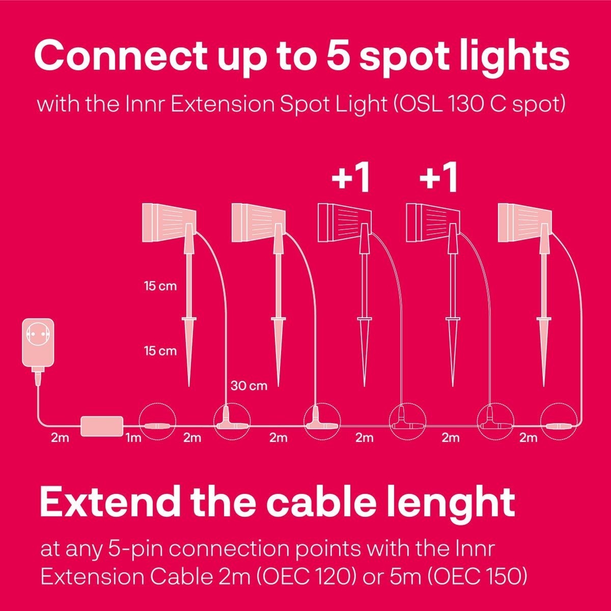 Innr Lighting 130 C Spot. Adatto per uso esterno, Forma del soffitto: Cilindro. Numero di lampadine: 1 lampadina(e), Potenza totale: 4,5 W, Voltaggio lampada: 24 V, Temperatura del colore (max): 6500 K. Codice di protezione internazionale (IP): IP65. Dimmerabile. Voltaggio di ingresso: 220 - 240 V. Colore del prodotto: Nero