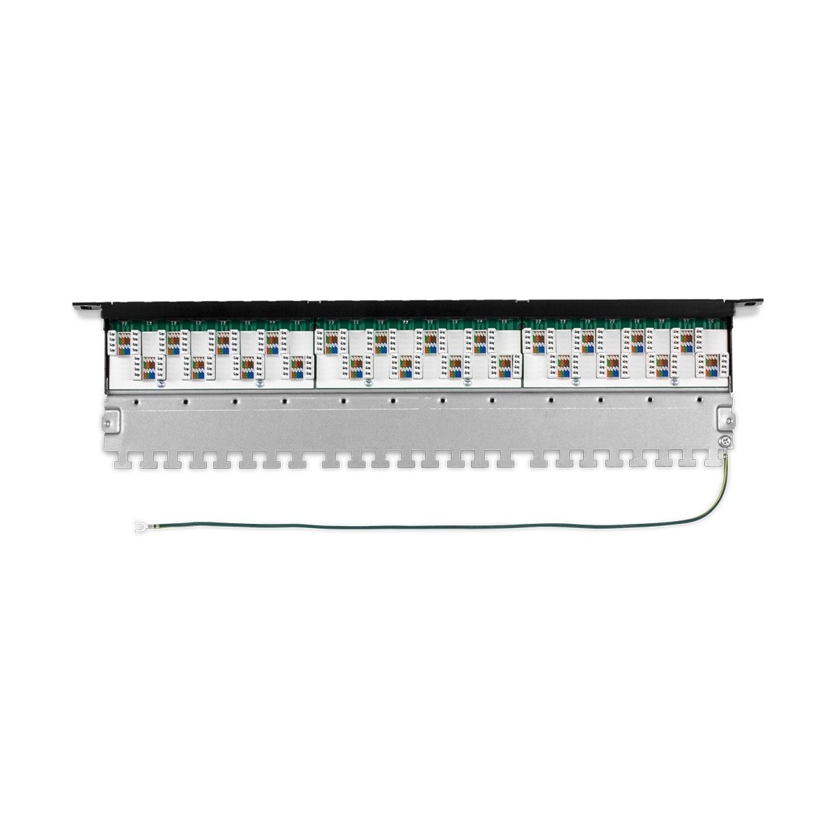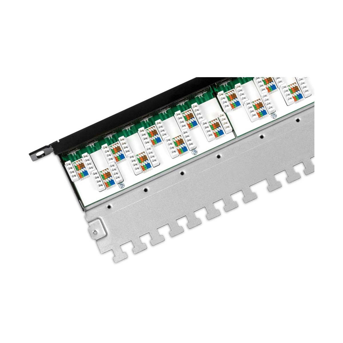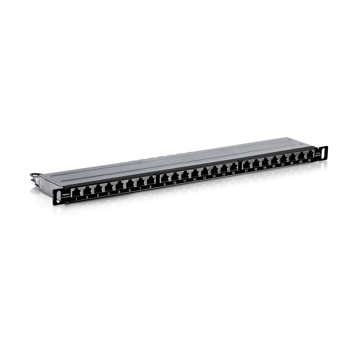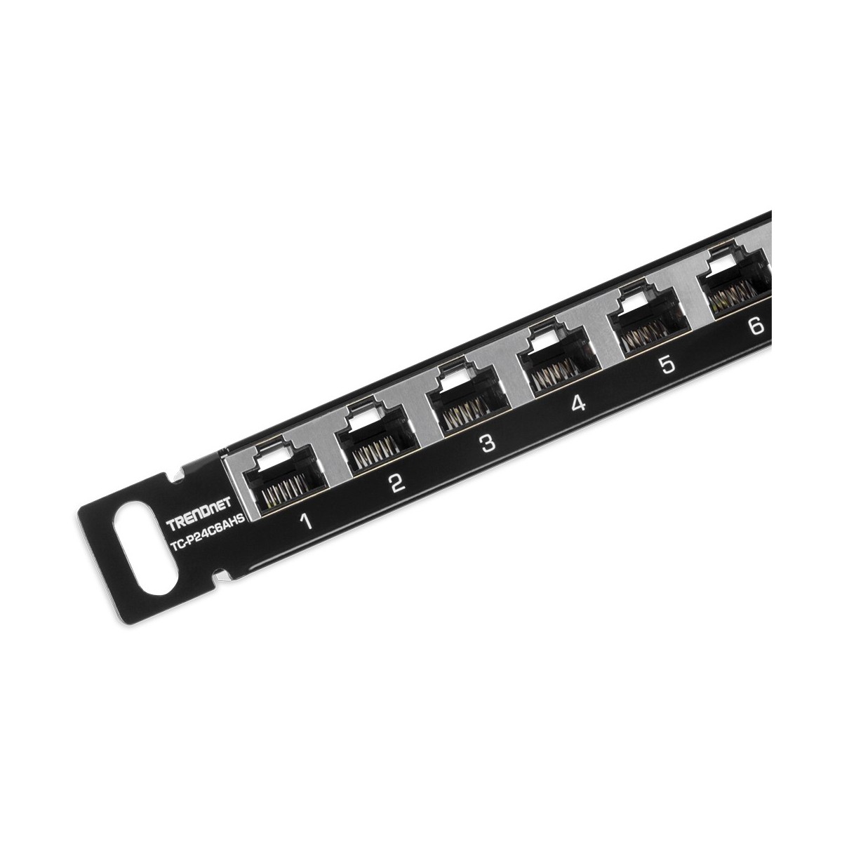 Trendnet TC-P24C6AHS. Tipo di interfaccia Ethernet: 10 Gigabit Ethernet, Connettore: RJ-45, Placcatura contatti: Oro. Colore del prodotto: Nero, Materiali: SGCC, Montaggio: Montaggio a rack. Larghezza: 440 mm, Altezza: 22,2 mm, Profondità: 115 mm