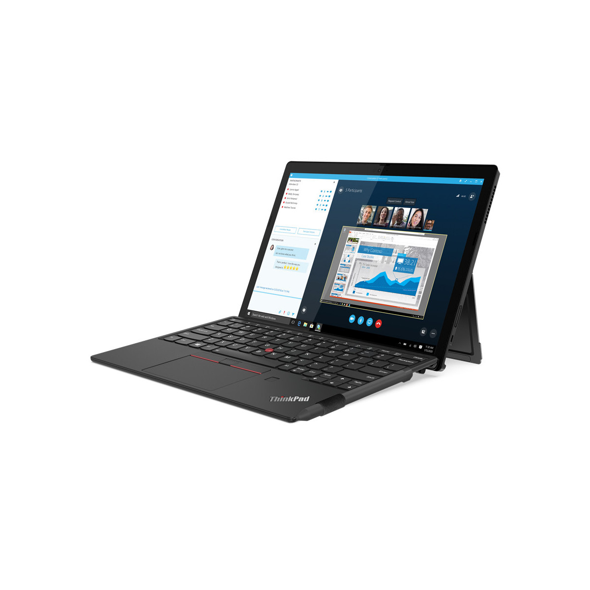 Il tablet ThinkPad X12 Detachable è progettato per i professionisti che sono in ufficio un giorno e sul campo un altro. È ultrasottile, il solo tablet misura meno di 9 mm di profondità, ed è leggero, il tablet e la tastiera opzionale insieme pesano poco più di 1,2 kg. Inoltre, con una batteria che dura tutto il giorno puoi affrontare riunioni e visite dei clienti senza dover ricaricare. E quando sta per esaurirsi, grazie alla tecnologia RapidCharge potrai ricaricarla fino all'80% in soli 60 minuti.