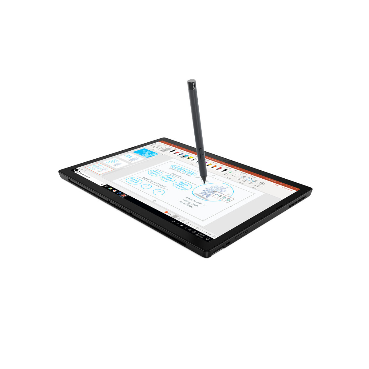 Prendi appunti. Disegna. Firma e modifica i documenti. Usa la penna magnetica opzionale Lenovo Precision Pen per trasformare il tuo ThinkPad X12 Detachable in una macchina per la progettazione. Realizzato con Corning Gorilla® Glass per una maggiore resistenza, il pannello Full HD+ offre una visione grandangolare su uno schermo da 400 nit con bordi sottili. In alternativa, collega la tastiera Folio opzionale al TrackPoint e ai tasti retroilluminati, con cui hai familiarità, per continuare a leggere le e-mail e a svolgere le altre attività quotidiane.