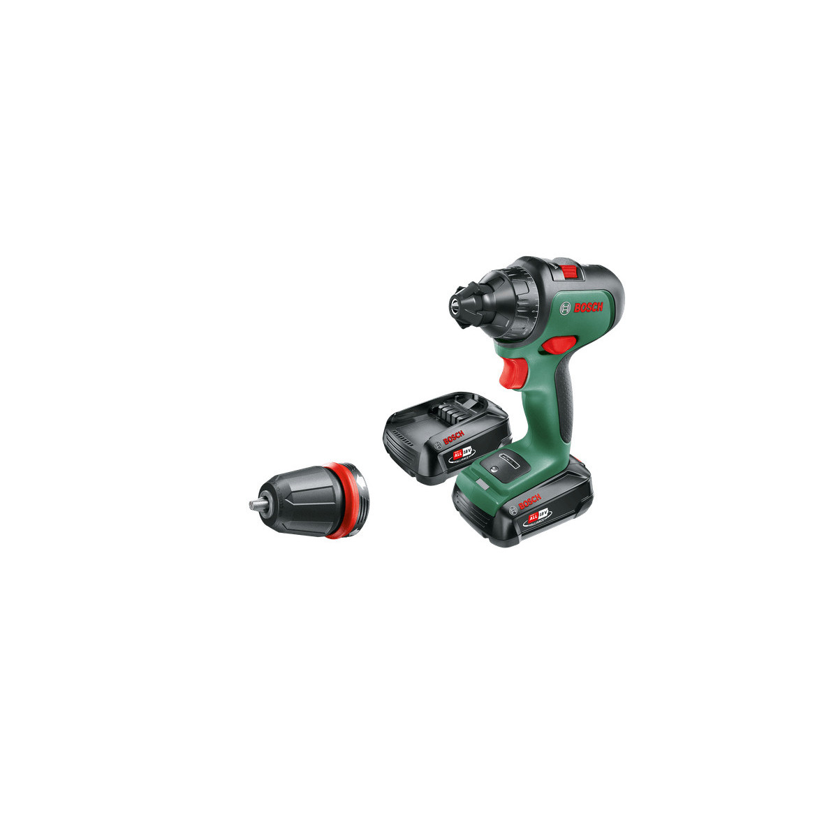 Bosch AdvancedDrill 18. Design del prodotto: Trapano con impugnatura a pistola, Tipo di mandrino: Senza chiave. Larghezza mandrino autoserrante (max): 1,3 cm, Regime minimo (max.): 1350 Giri/min, Diametro di foratura nel legno (massimo): 3,5 cm. Alimentazione: Batteria, Capacità della batteria: 2,5 Ah, Voltaggio della batteria: 18 V. Peso: 1 kg. Numero di batterie incluse: 2 pz