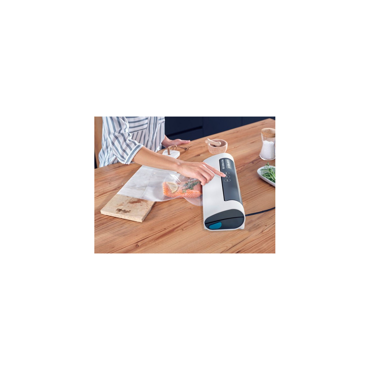 LEIFHEIT Vacu Power 100. Colore del prodotto: Nero, Turchese, Bianco, Livello massimo di vuoto: 500 mbar, Funzioni della macchina sottovuoto: Sigillatura sottovuoto. Potenza: 80 W, Tensione di ingresso AC: 220/240 V, Frequenza di ingresso AC: 50 Hz. Larghezza: 378 mm, Profondità: 103 mm, Altezza: 66 mm