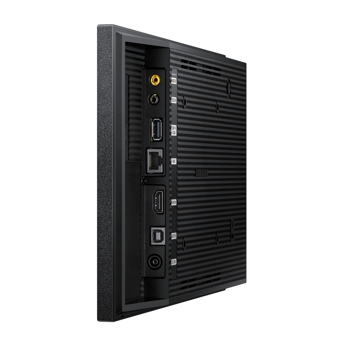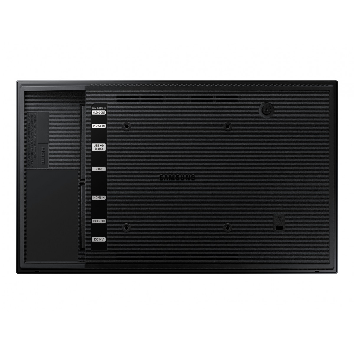 Samsung QB13R-T. Dimensioni schermo: 33 cm (13"), Risoluzione del display: 1920 x 1080 Pixel, Luminosità schermo: 250 cd/m². Colore del prodotto: Nero, Posizionamento supportato: Interno, Panel mounting interface 24/5000 Interfaccia per montaggio a pannello: 100 x 200 mm. Consumi: 27,5 W, Consumo energetico (in sospensione): 0,5 W, Classe efficienza energetica: B. Larghezza: 322 mm, Profondità: 29,8 mm, Altezza: 193,5 mm. Larghezza imballo: 376 mm, Profondità imballo: 248 mm, Altezza imballo: 132 mm