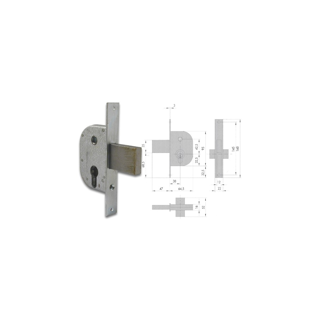 Cisa 42211.30.0 Serratura da infilare per cancelli, per cilindro europeo, scrocco con dispositivo di bloccaggio, quadro maniglia passante, finitura zincata.
