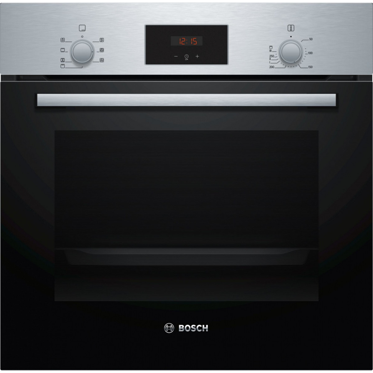 Bosch Serie 2 HBF133BR0. Dimensione del forno: Media, Tipo di forno: Forno elettrico, Capacità interna forno totale: 66 L. Colore del prodotto: Nero, Acciaio inossidabile, Tipo di controllo: Manopola, Posizione di controllo: In alto a destra / a sinistra. Classe efficienza energetica: A, Consumo energetico (convenzionale): 0,98 kWh, Consumo energetico (convezione forzata): 0,79 kWh. Quantità lampade: 1 lampada(e), Tipo di lampada: Alogena. Larghezza: 594 mm, Profondità: 548 mm, Altezza: 595 mm