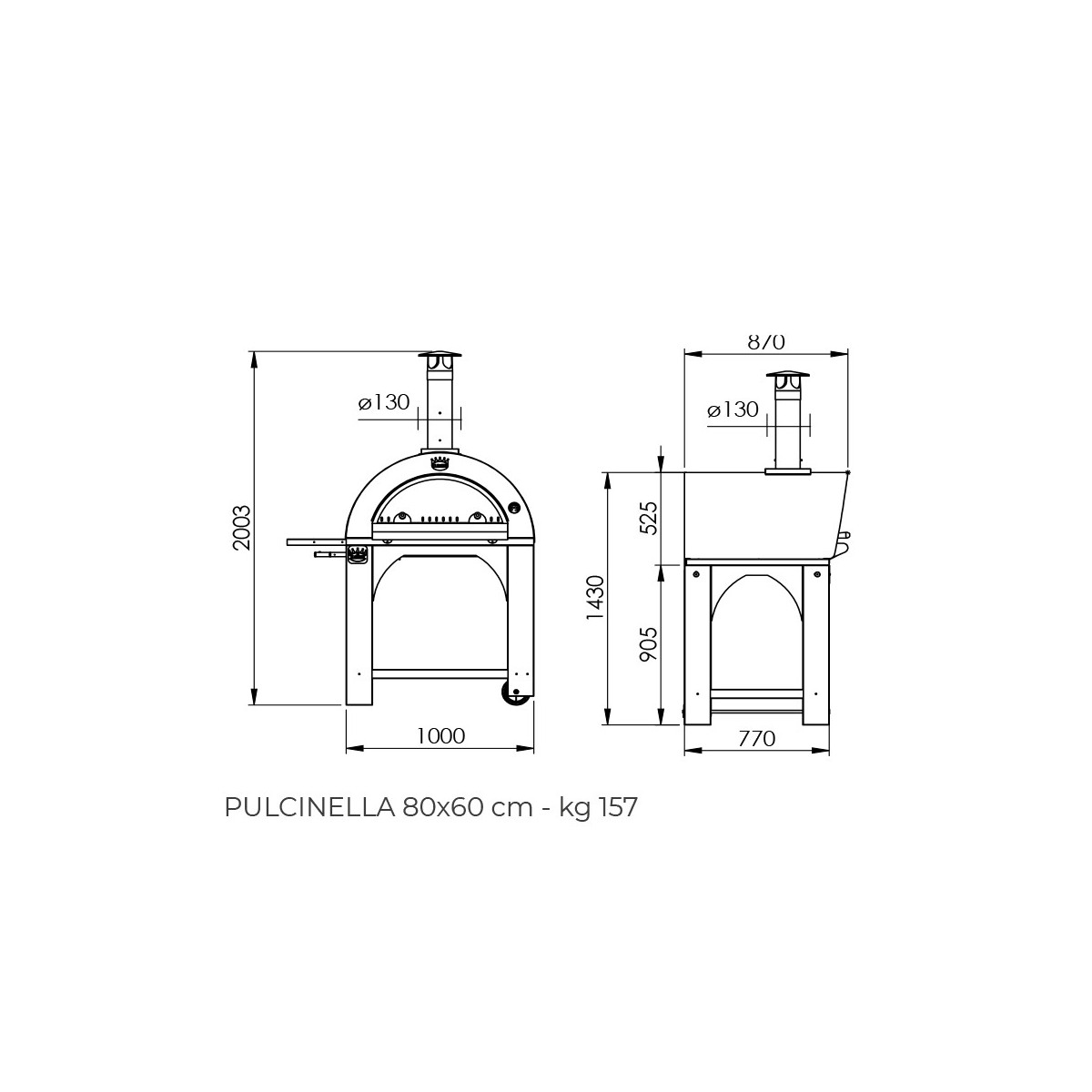 Clementi Forno Pulcinella Legna 80X60 Tetto Inox 304