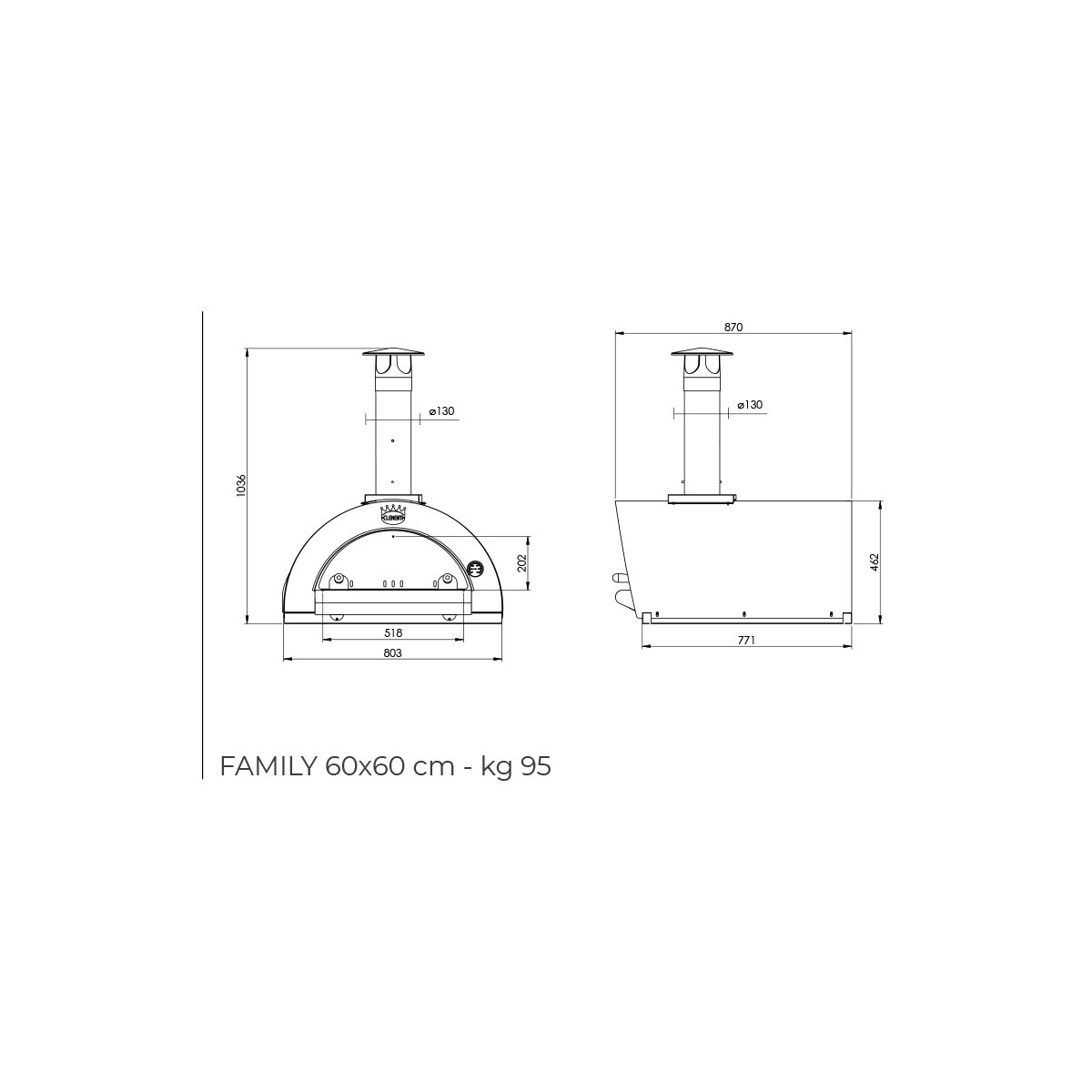 Dimensioni camera di cottura: 60x60 (2 pizze) sono disponibili altri formati.