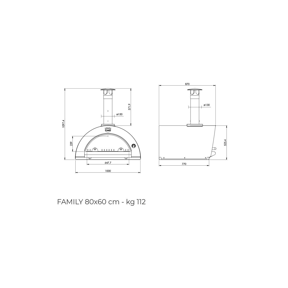 Caratteristiche Forno a legna per pizza Clementi Family 80x60 tutto Inox 430