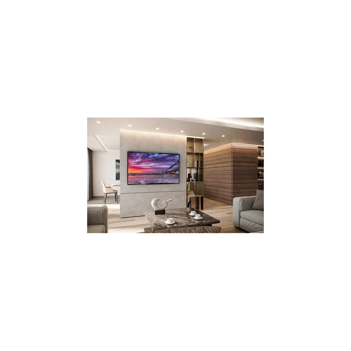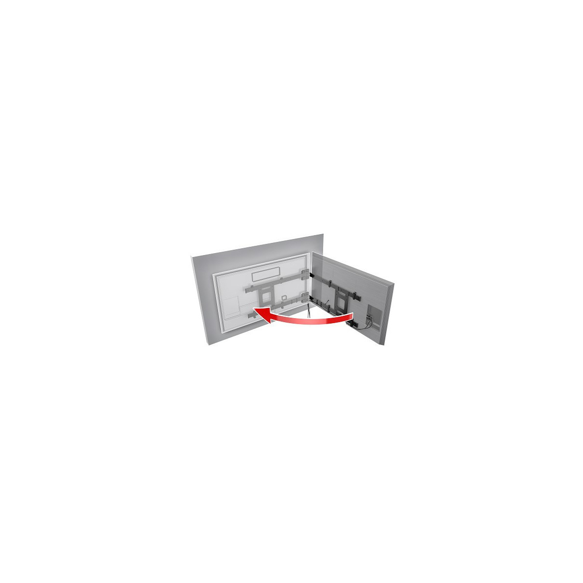 Infatti, grazie alla struttura a bandiera consente di poter ruotare qualsiasi televisore dai 49'' ai 75'' di ben 90°, da chiuso invece, grazie alla calamita in dotazione, rimane ben aderente con una distanza dal muro di appena 2 cm.
