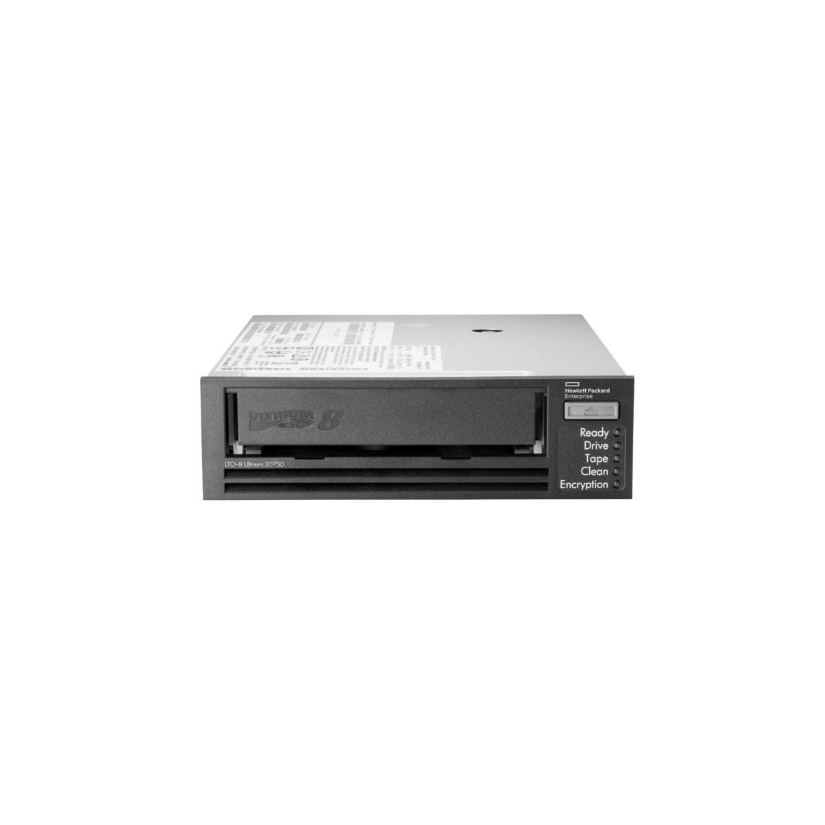Hewlett Packard Enterprise StoreEver LTO-8 Ultrium 30750. Tipo: LTO, Rapporto di compressione: 2,5:1, Interfaccia: Serial Attached SCSI (SAS). Capacità originaria: 12000 GB, Capacità compressa: 30000 GB. Velocità massima di trasferimento dati: 300 Mbit/s. Larghezza: 145 mm, Profondità: 206 mm, Altezza: 41 mm