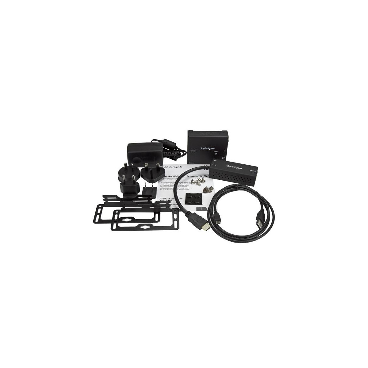 StarTech.com Kit Extender HDBaseT con Trasmettitore compatto - HDMI via CAT5 - fino a 4k. Tipo: Trasmettitore e ricevitore AV, Risoluzione massima: 4096 x 2160 Pixel, Tipi di cavi supportati: Cat5e,Cat6. Tecnologia di connessione: Cablato. Tensione di ingresso AC: 100-240 V, Tensione di esercizio: 12 V, Corrente d'ingresso: 0.6 A. Larghezza: 68 mm, Profondità: 80 mm, Altezza: 25 mm. Larghezza imballo: 196 mm, Profondità imballo: 293 mm, Altezza imballo: 74 mm