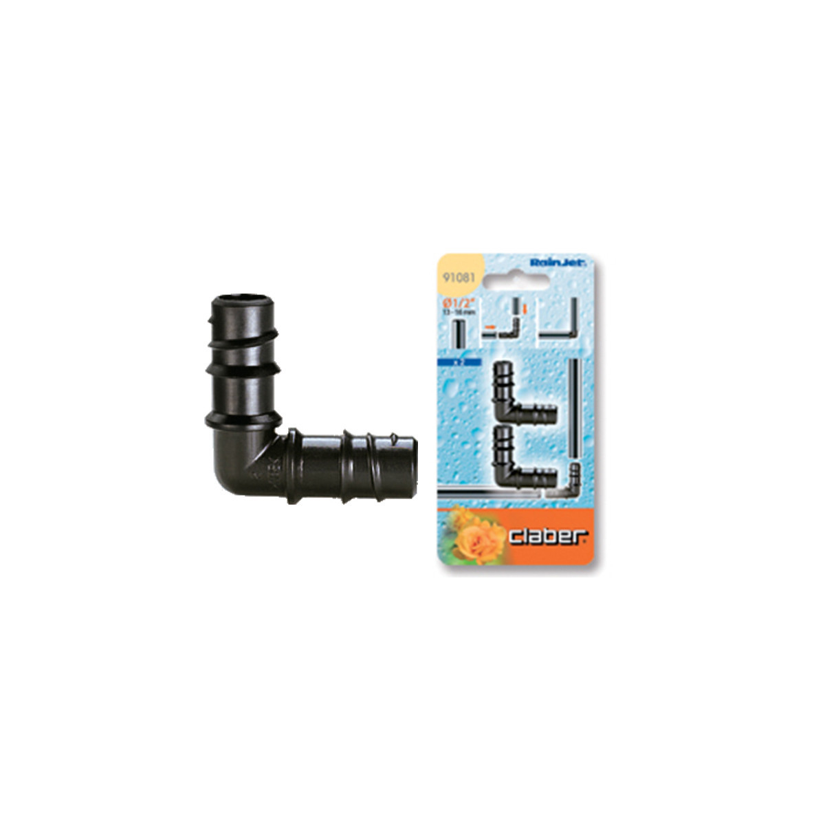 Claber 91081 Raccordo ad angolo. Permette di raccordare due spezzoni di tubo collettore da 1/2 (13-16 mm) Blister da 2 pz.