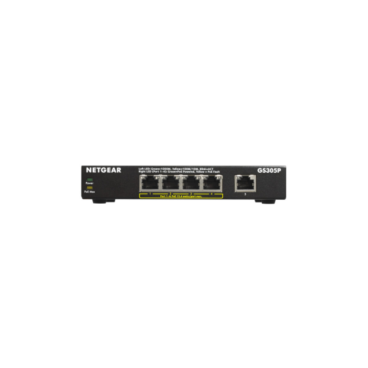 Netgear GS305Pv2 Non gestito Gigabit Ethernet (10/100/1000) Supporto Power over Ethernet (PoE) Nero