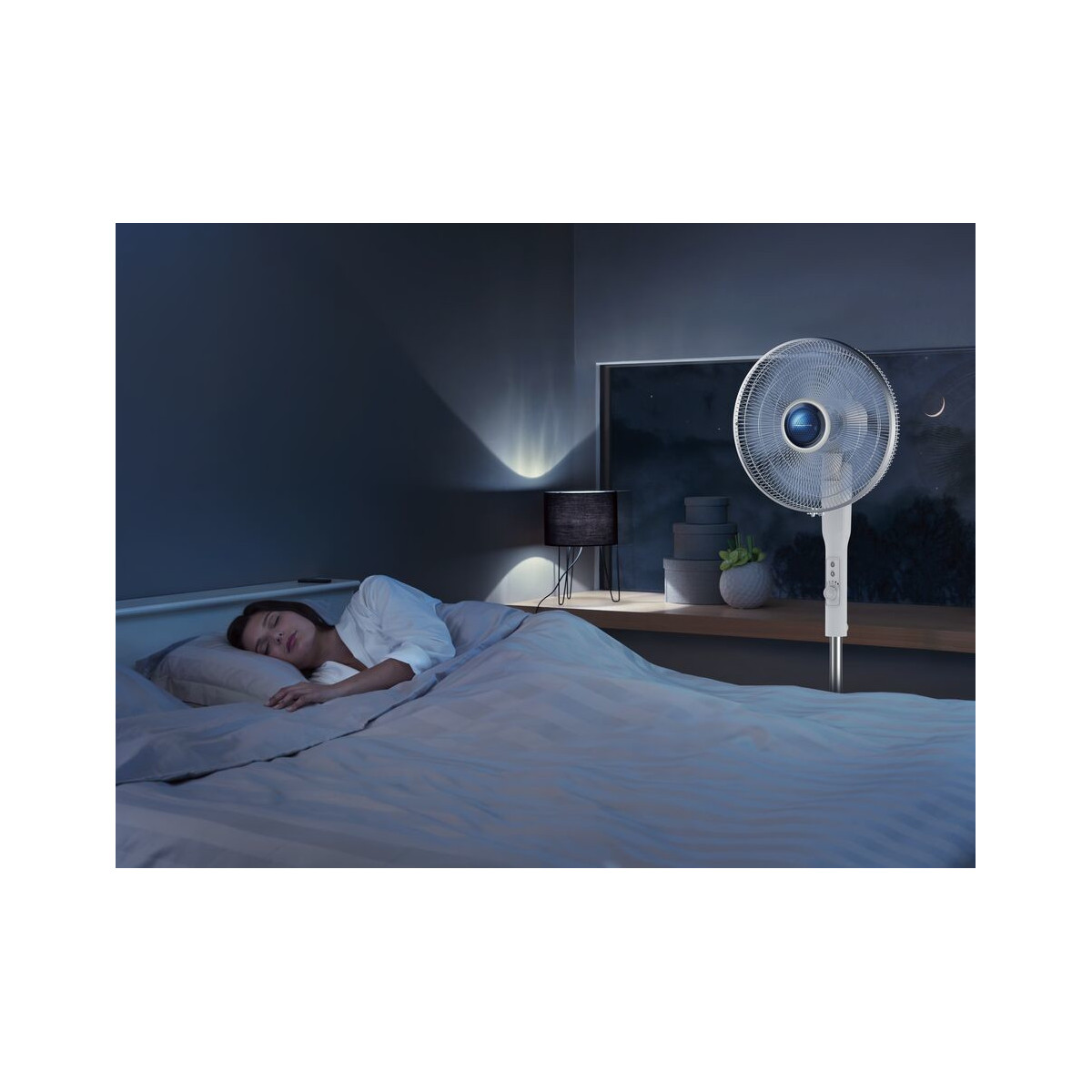 Rowenta Turbo Silence Extreme+ VU5840. Tipo: Ventilatore domestico con pale, Colore del prodotto: Bianco, Installazione: Pavimento. Tipologia alimentazione: AC, Tensione di ingresso AC: 220 V, Frequenza di ingresso AC: 50 Hz. Larghezza: 453 mm, Profondità: 430 mm, Altezza: 1320 mm. Larghezza imballo: 225 mm, Profondità imballo: 670 mm, Altezza imballo: 455 mm. Quantità per container intermodale (20 piedi): 414 pezzo(i), Quantità per container intermodale (40 piedi): 864 pezzo(i), Ampiezza del pallet: 80 cm