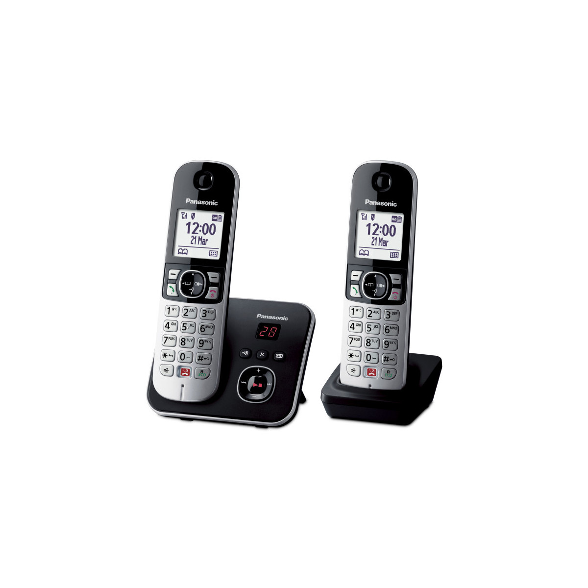 Panasonic KX-TG6862JTB. Tipo: Telefono DECT, Tipo di apparecchio: Cornetta wireless. Telefono con vivavoce. Identificatore di chiamata. Dimensioni schermo: 4,57 cm (1.8"). Colore del prodotto: Nero, Argento. Numero di cornette incluse: 2